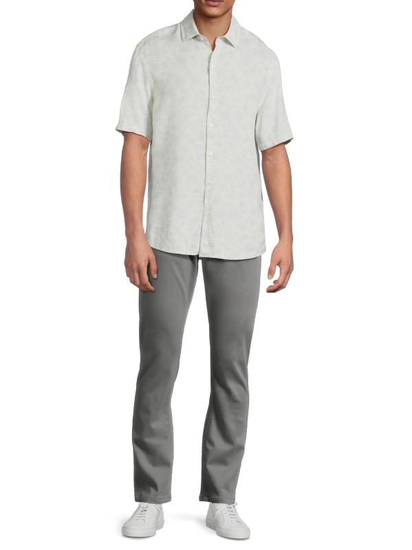 Crafted of a soft viscose-linen blend, the Merrick button-front shirt from Robert Barakett features a subtle reverse floral print on a slub texture base.Spread collar Short sleeves Button front closure 85% viscose/15% linen Machine wash Imported