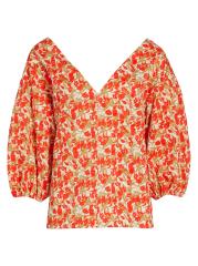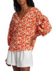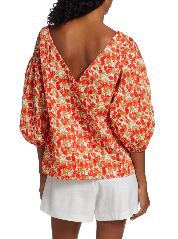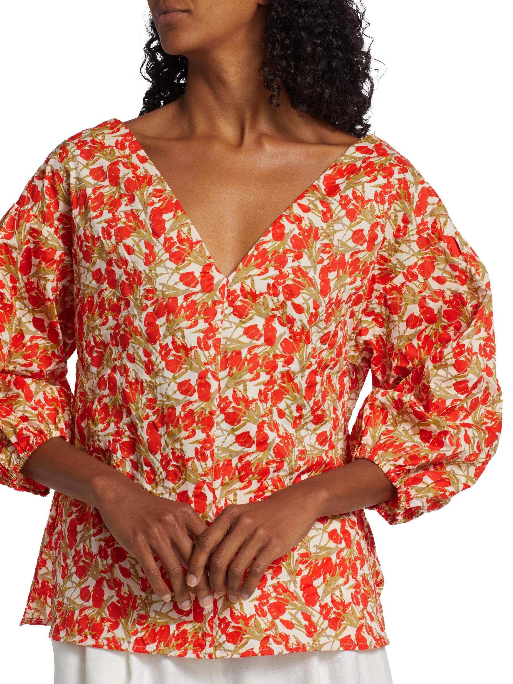 EXCLUSIVE. From the MICHELLE SMITH x Saks Collaboration. Crafted of soft floral-printed Italian cotton, this relaxed-fit top is designed with a flattering V-neck and voluminous balloon sleeves.