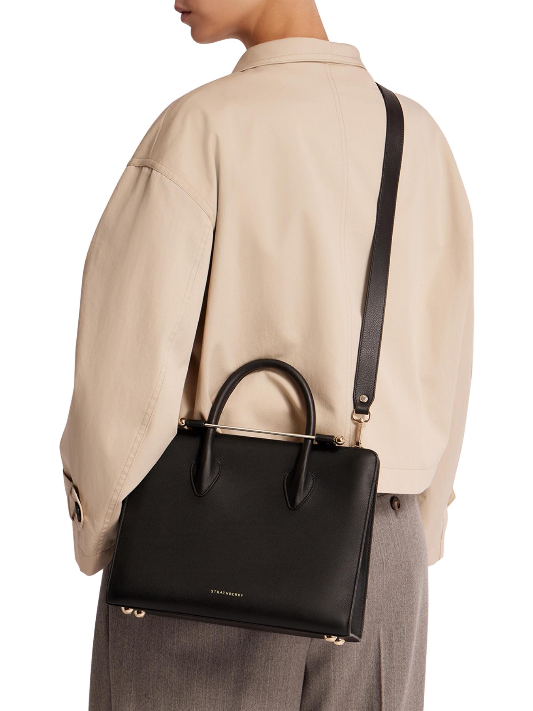 Crafted of a leather blend, this midi tote bag from Strathberry is designed with top handles that loop through a signature metal bar.