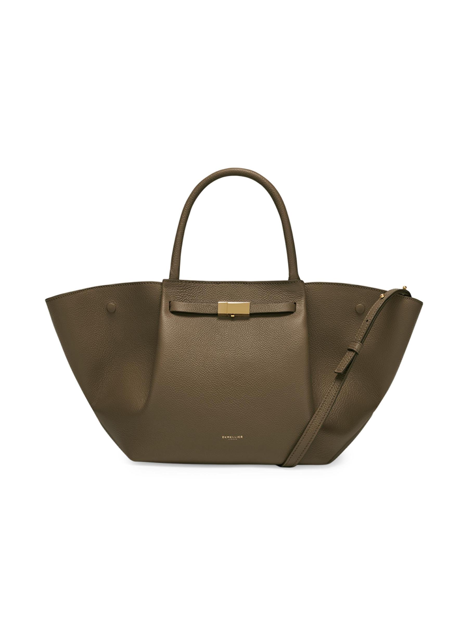 DeMellier's Midi New York tote bag is crafted in Spain of grained leather. This piece is designed with goldtone hardware and a printed logo at the front.Two top handles Adjustable, removable shoulder strap Interior: one zip pocket Magnetic closure Leather Lining: cotton Made in Spain
