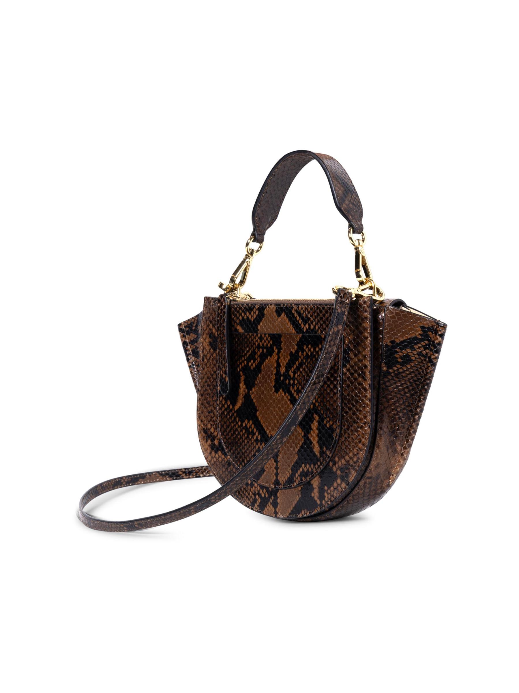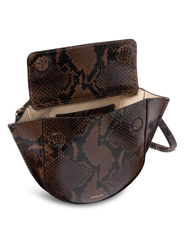 Made in Italy, Wandler's Hortensia top handle bag from is crafted of python-embossed leather.Made with responsibly tanned leather Top handle Adjustable removable crossbody strap Exterior: one patch and zip pocket Interior: one card slot Dust bag Flap with magnetic closure 100% leather upper, exclusive of trim Lining: Polyurethane/polyamide Made in Italy
