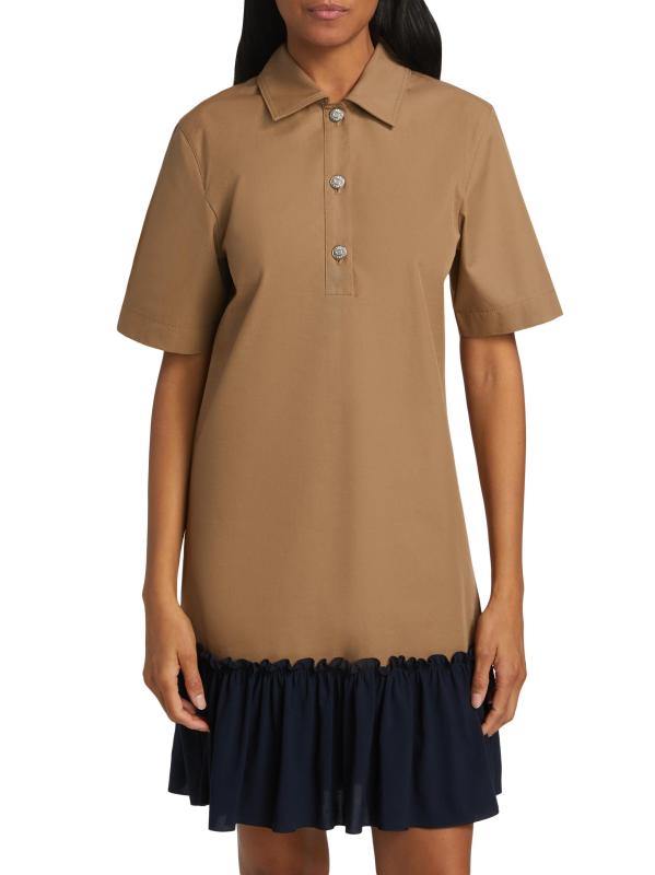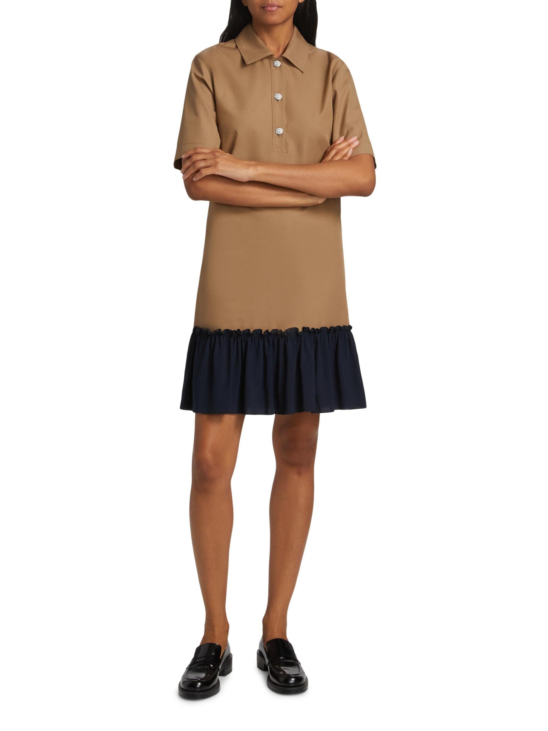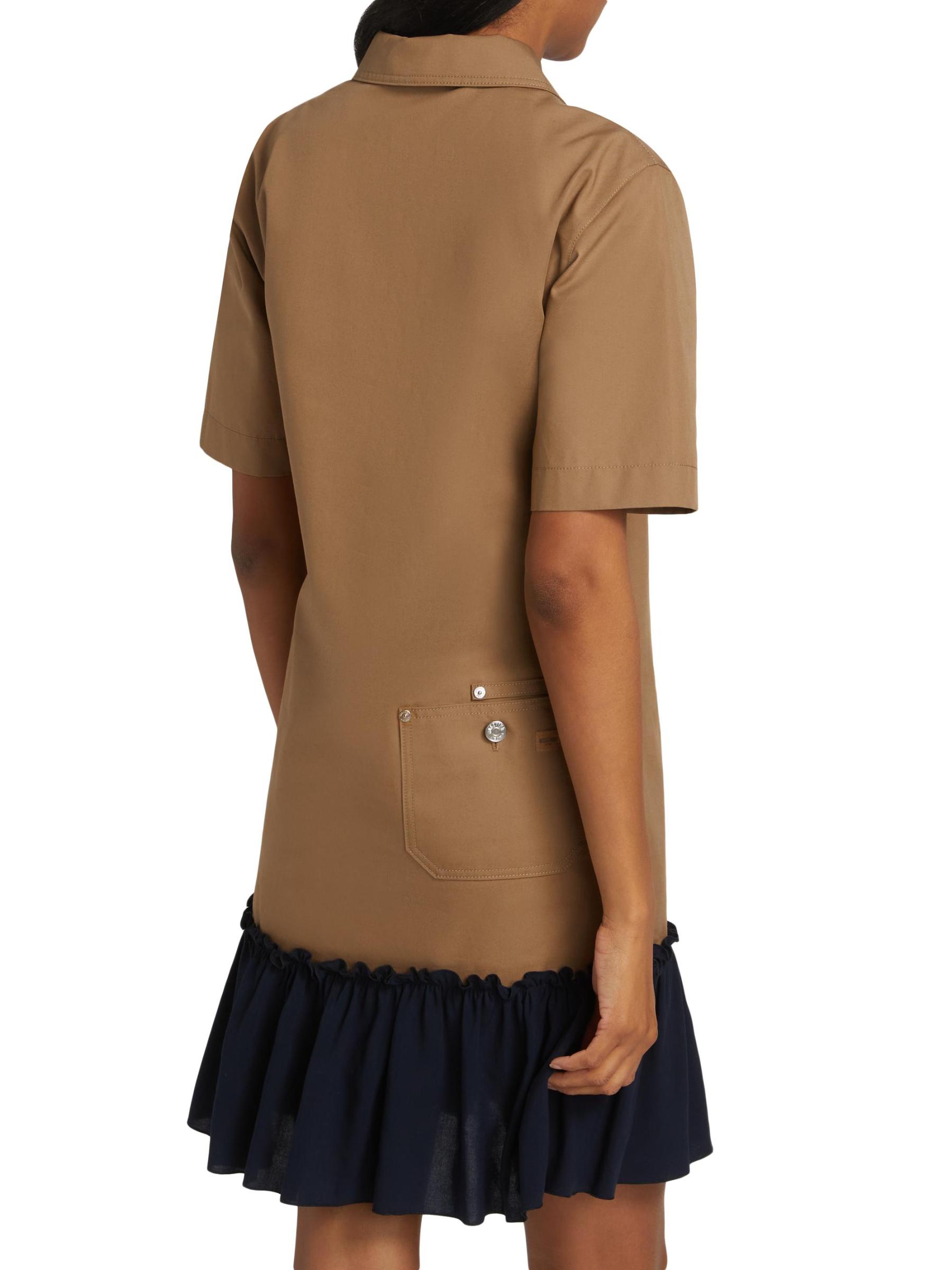 Crafted of heavy cotton twill, Moschino Jeans' pairs a timeless shirtdress with a contrasting flounced hem.