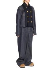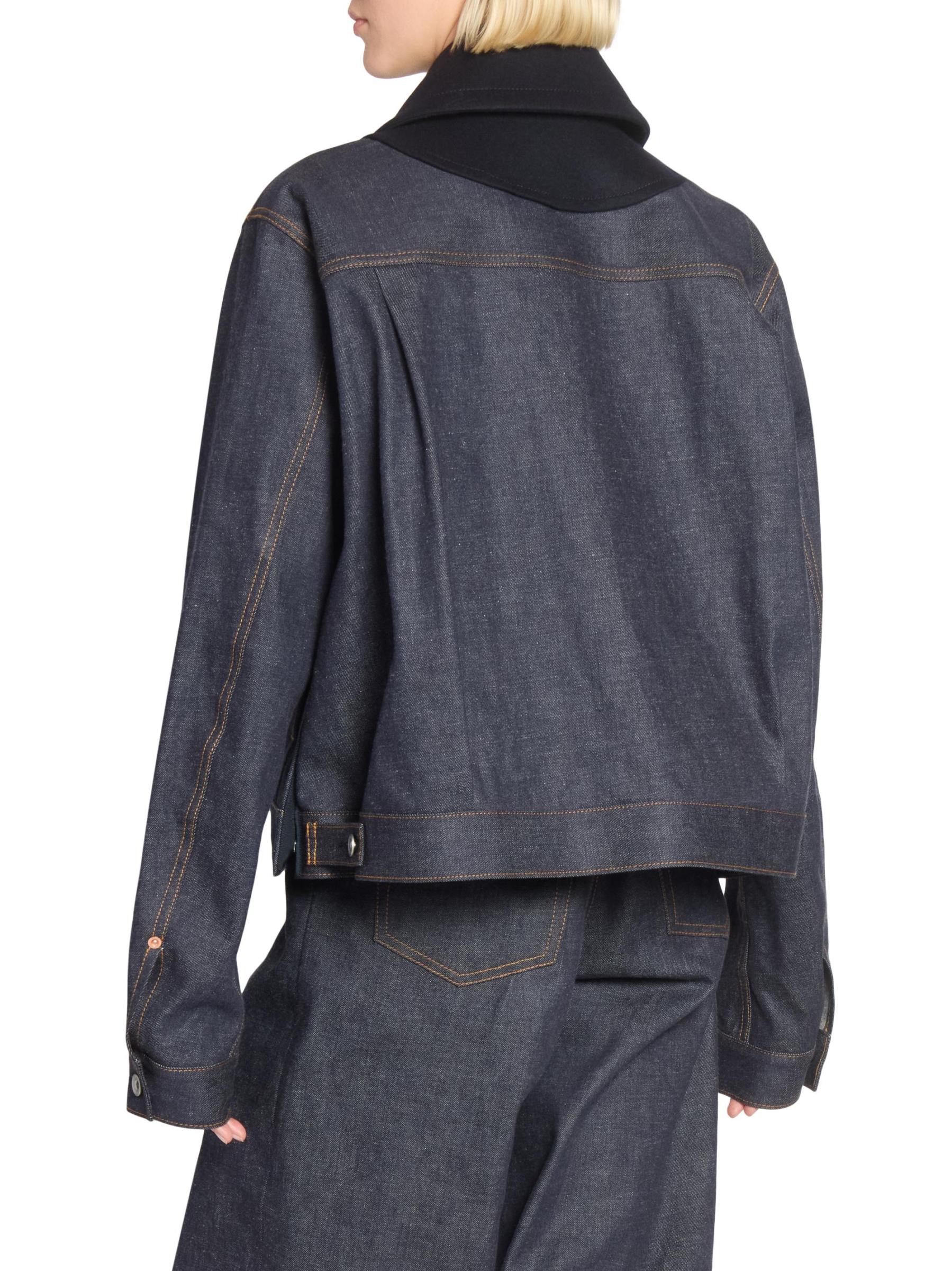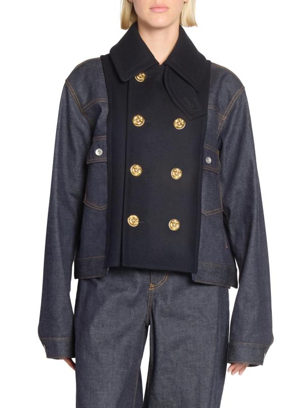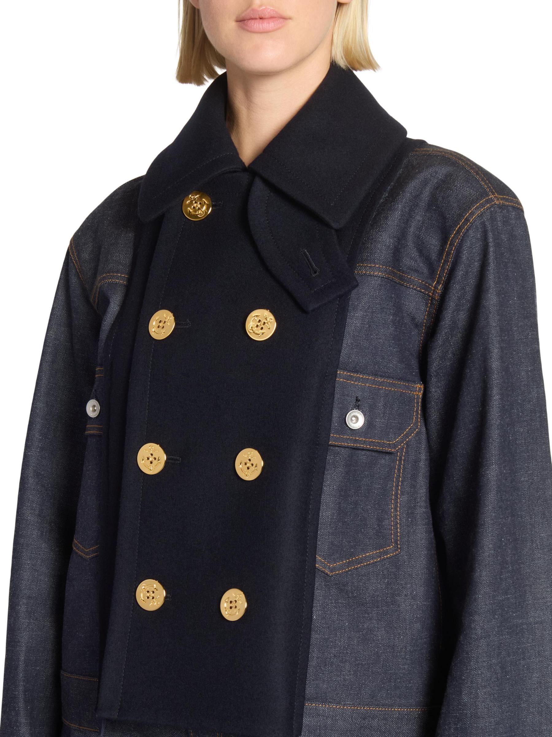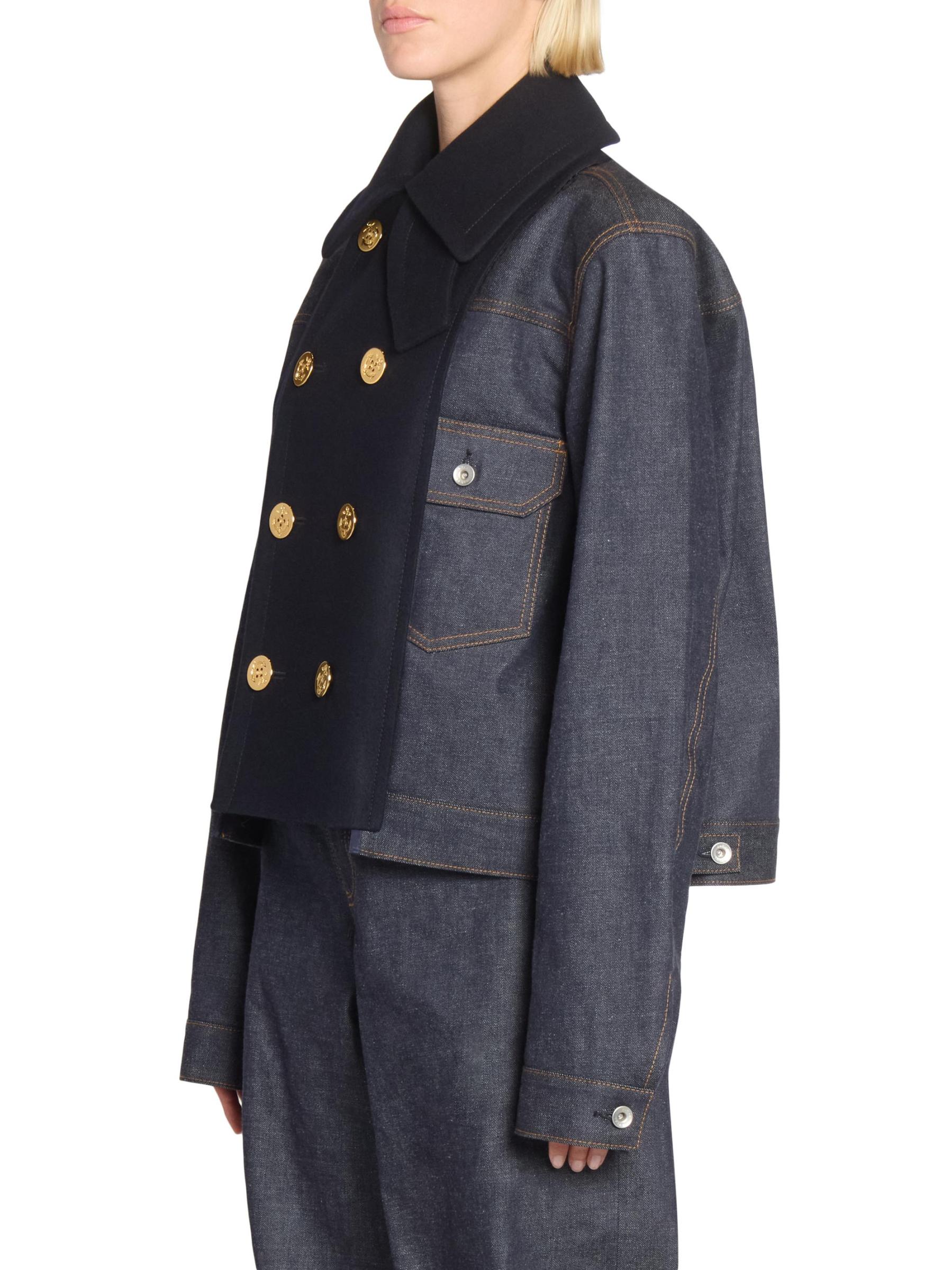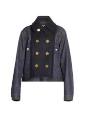 Mixed-Media Double-Breasted Denim Jacket