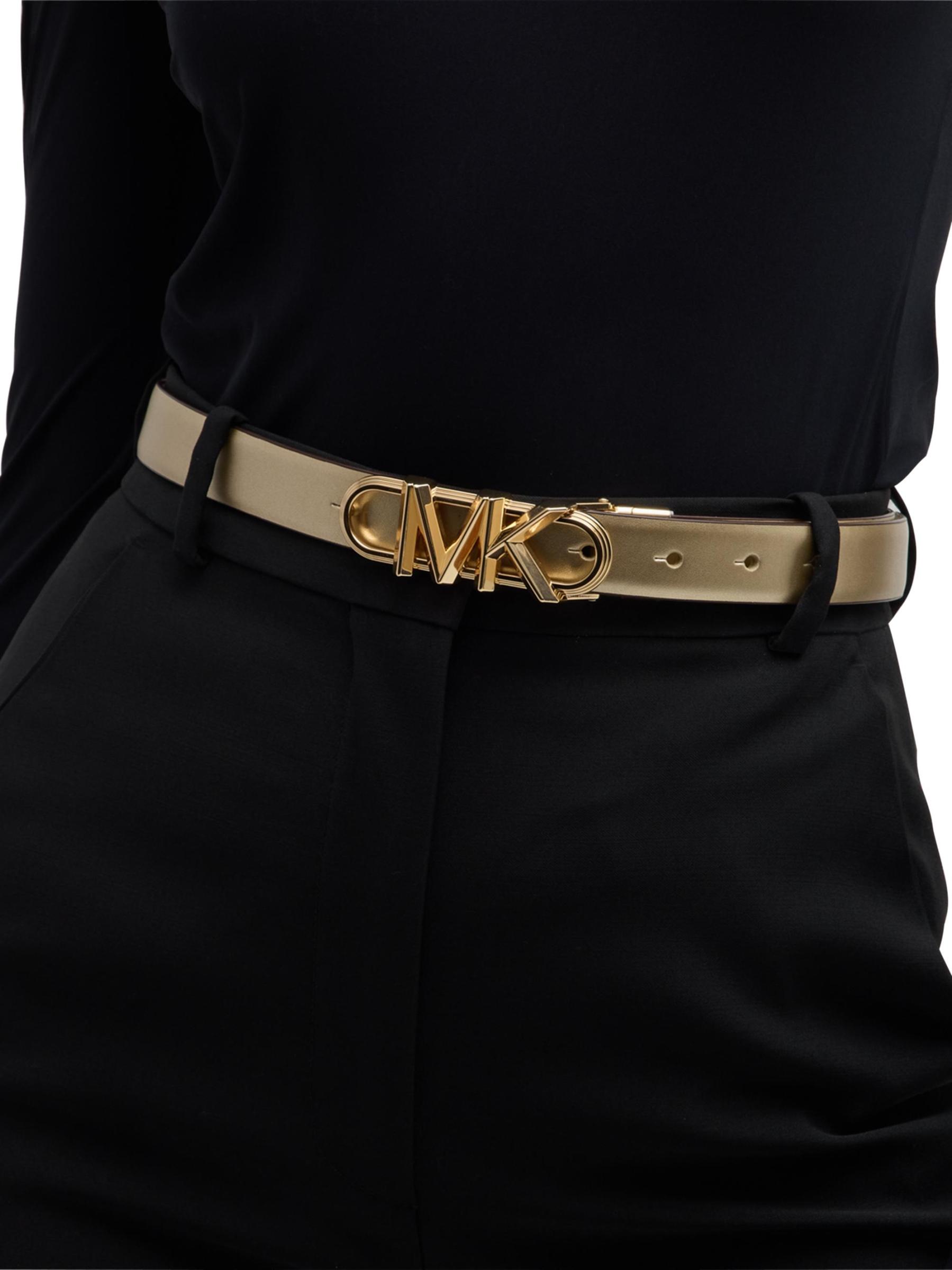 MK Logo Buckle Reversible Metallic Leather Belt