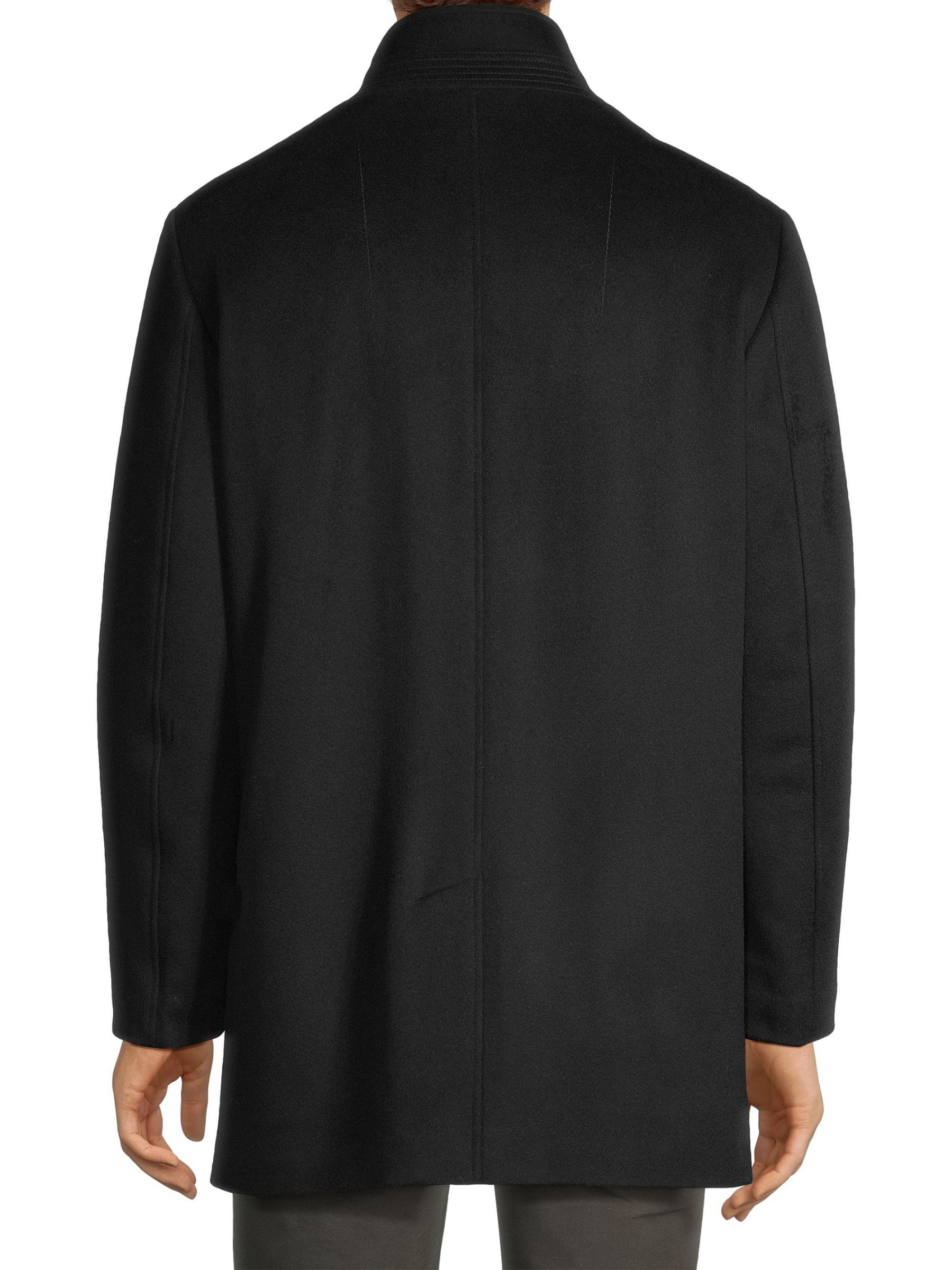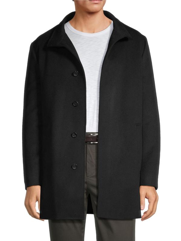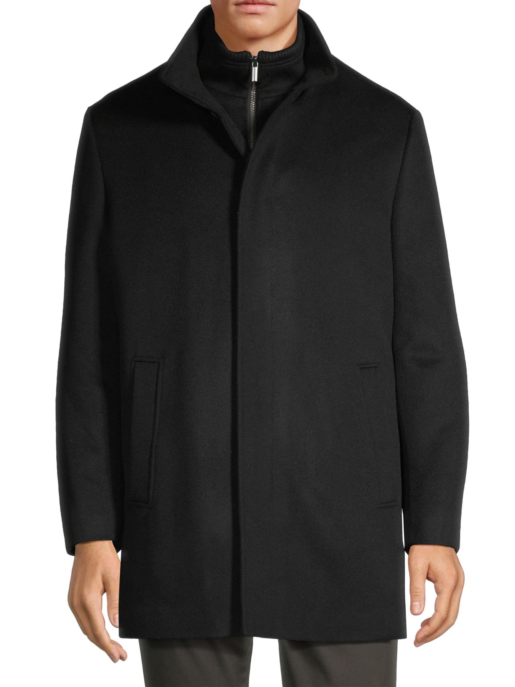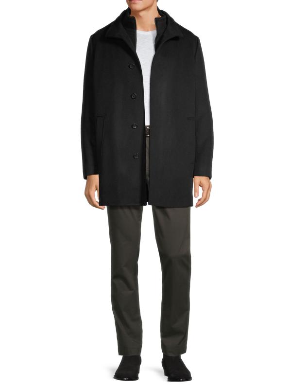 Cardinal of Canada's Mont Royal Car Coat is crafted of wool and cashmere and designed with a stand collar. This piece features a zippered bib and concealed button-front placket. Side slip pockets complete this sleek silhouette.Stand collar Long sleeves Side slip pockets Concealed front zip and button-front closure 90% wool/10% cashmere Lining: 100% polyester Dry clean Imported
