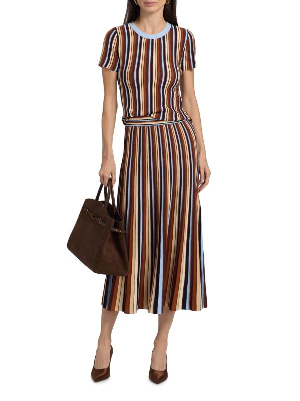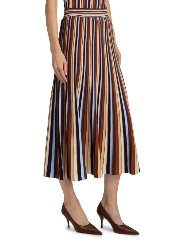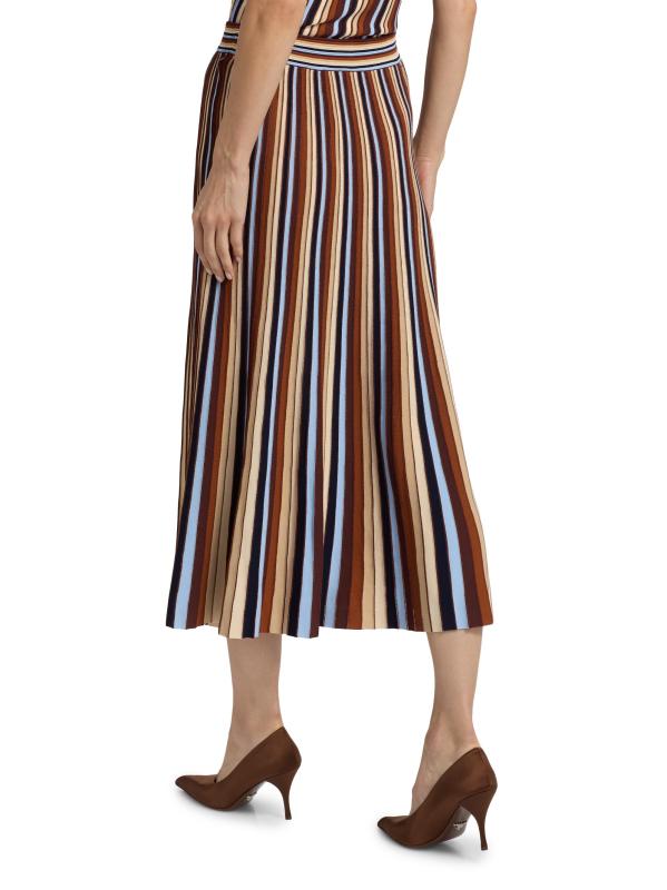 Cut for a midi length, the Montana skirt from Cara Cara is detailed with a novelty stripe pattern and features subtle pleating.Elasticized waistband Pulls on 80% Viscose/20% nylon Dry clean Imported