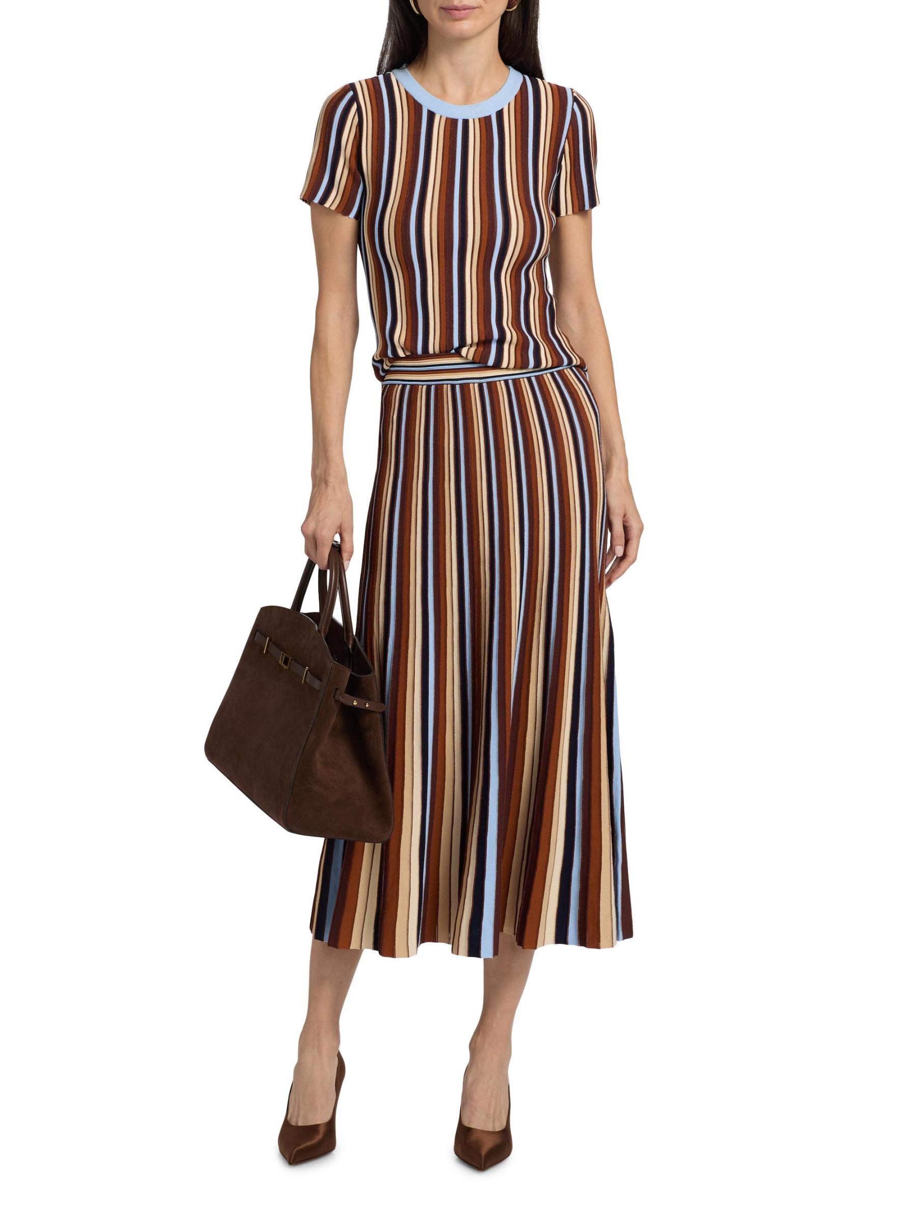 Cut for a midi length, the Montana skirt from Cara Cara is detailed with a novelty stripe pattern and features subtle pleating.
