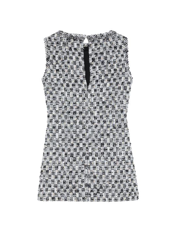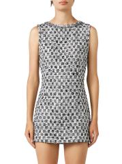 Cut in a shift silhouette, this Moorgate minidress from Liberowe is crafted of tweed with a woven geometric design and braided trim.Round neck Sleeveless Back zip closure 35% cotton/17% wool/15% acrylic/12% nylon/6% linen/6% polyester/5% metallized polyester/4% viscose Lining: 100% polyester Dry clean Made in UK