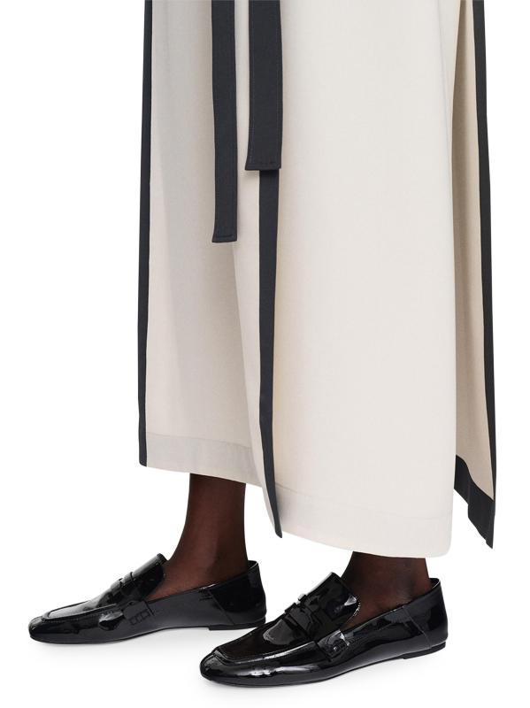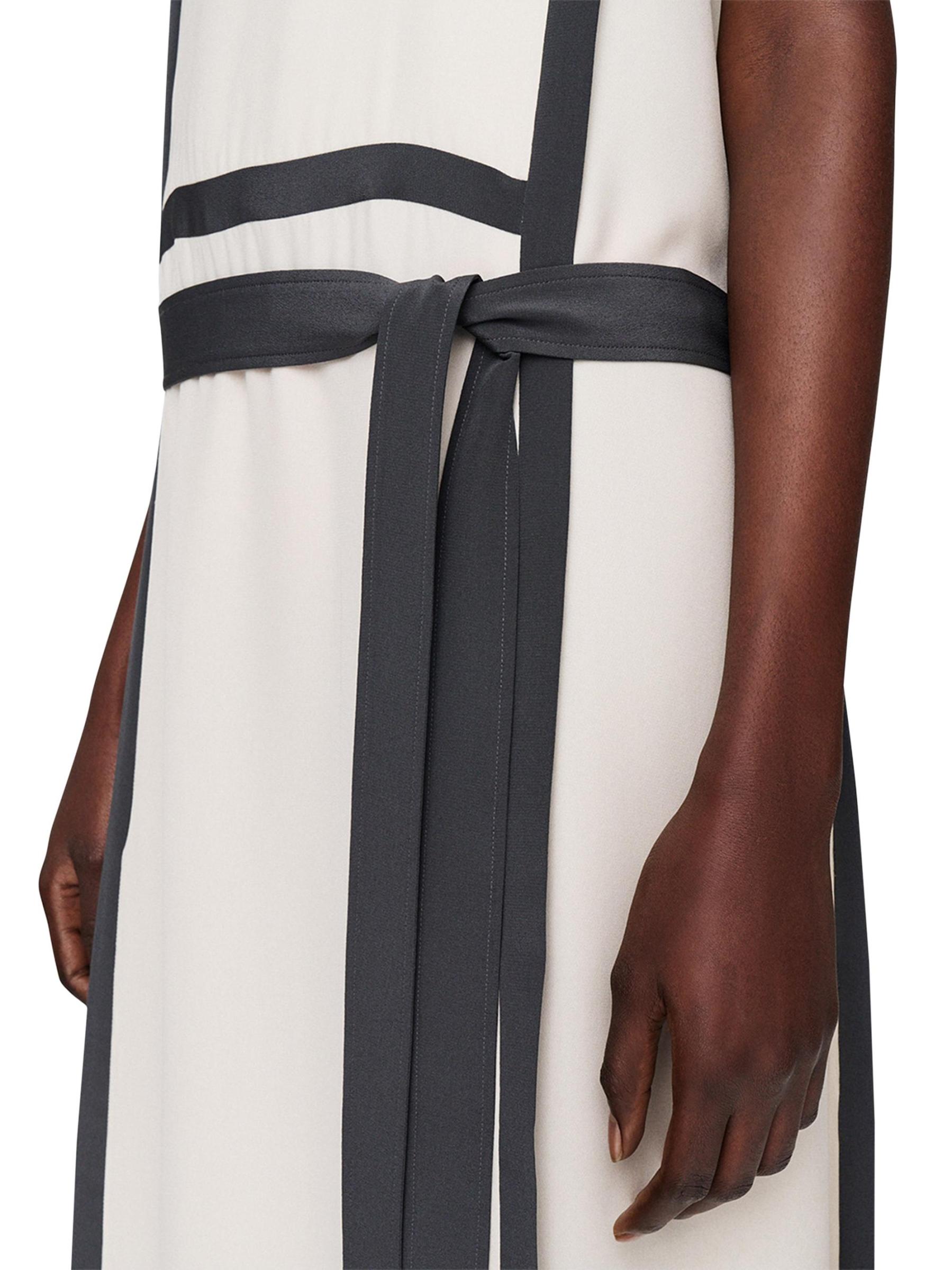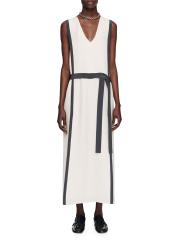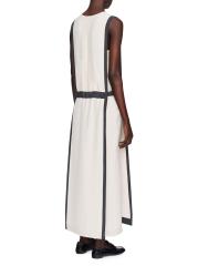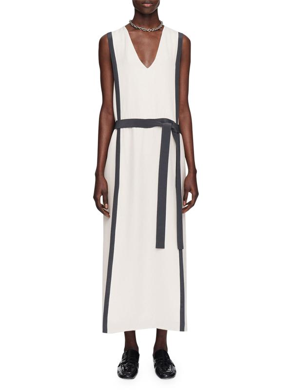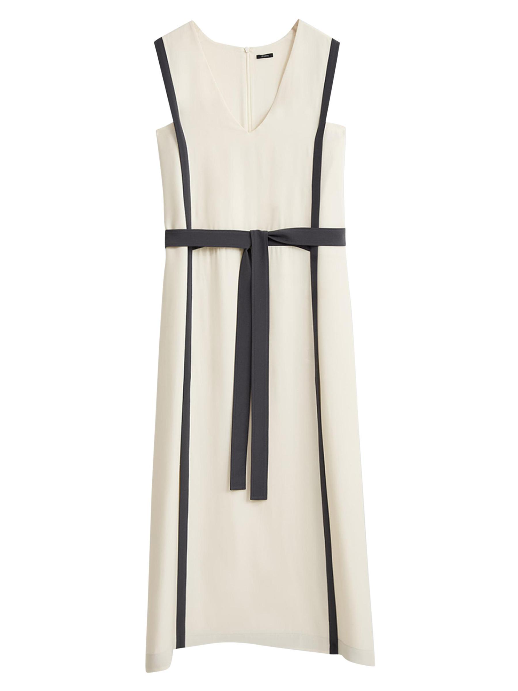 The Muguet midi-dress from Joseph is crafted of silk crepe and cut to a shift silhouette with contrast trim and a tie waist.