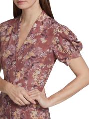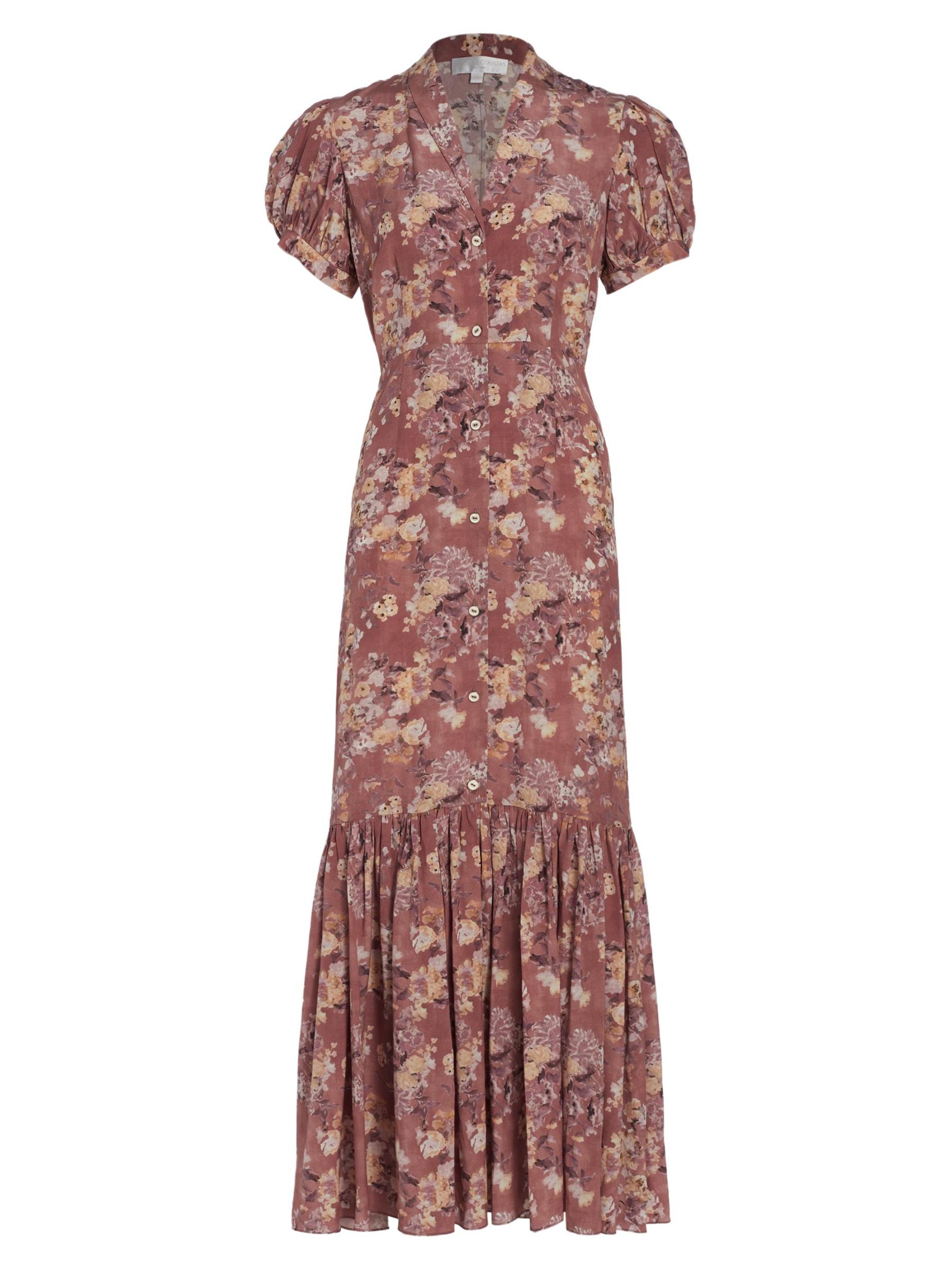 CAROLINE CONSTAS' puff-sleeve Nancy maxi dress features a painterly floral print and pleated flounce hem.Shawl collar Short puff sleeves with button cuffs Button front 100% Silk Dry clean Imported