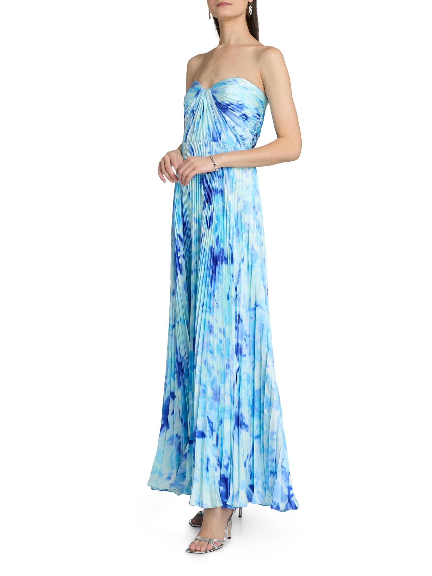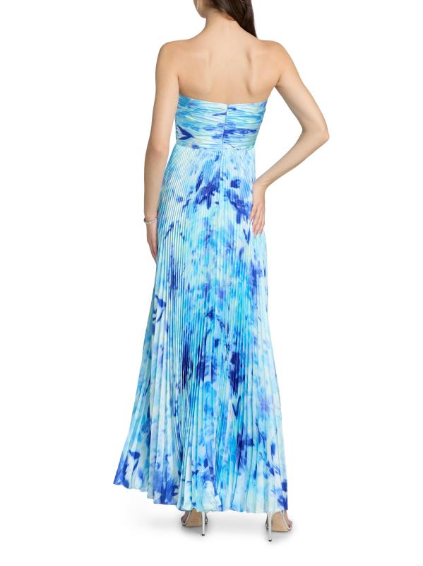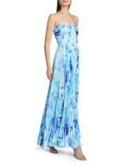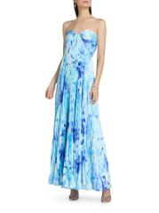As It May's Naomi strapless A-line satin gown is designed with an abstract print, sweetheart neck, and draped bustier bodice.Sweetheart neck Strapless Back zip closure 100% polyester Lining: 100% polyester Dry clean Imported