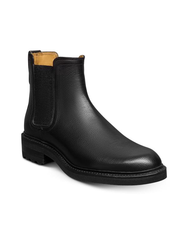 Allen Edmonds’ Nash Chelsea boots, handcrafted of pebble-grain leather, are finished with a layered lug sole and stacked heel.