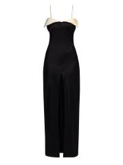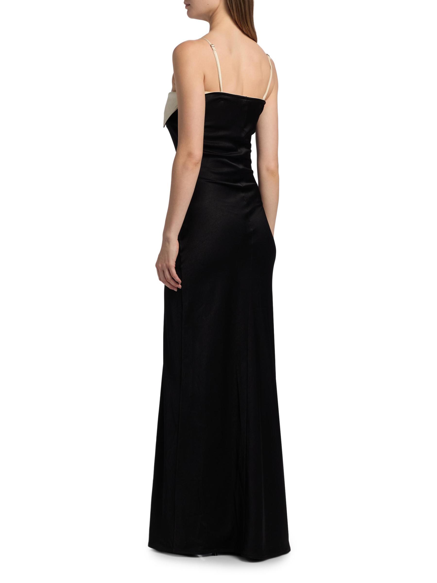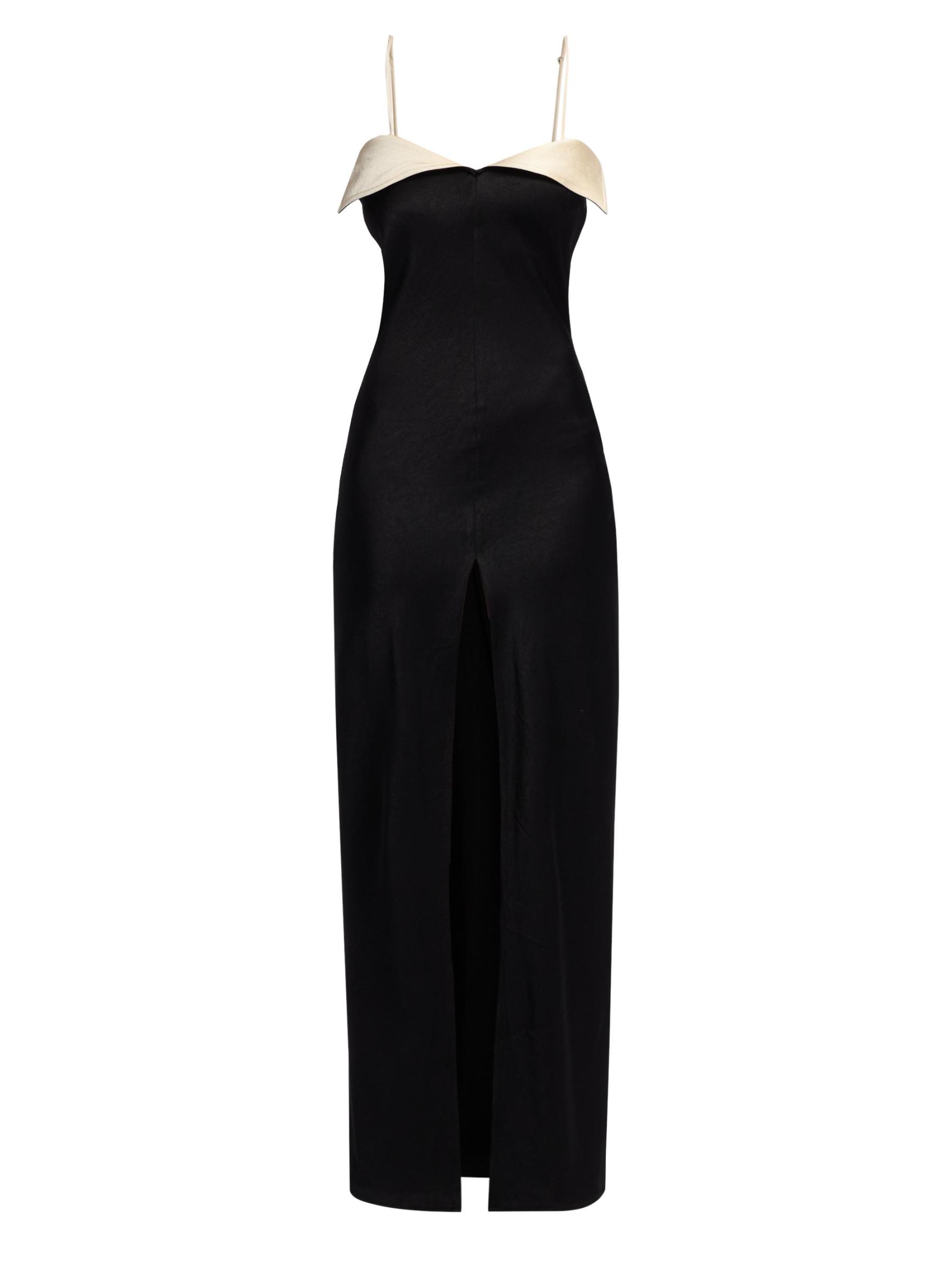 Crafted of sleek satin, Nanushka's Nelma maxi dress features a contrasting folded neckline with delicate straps. A high center slit completes the look.