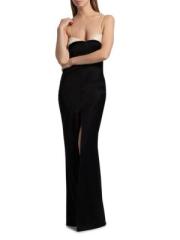 Crafted of sleek satin, Nanushka's Nelma maxi dress features a contrasting folded neckline with delicate straps. A high center slit completes the look.Sweetheart neckline Adjustable straps 82% triacetate/18% polyester Machine wash Imported