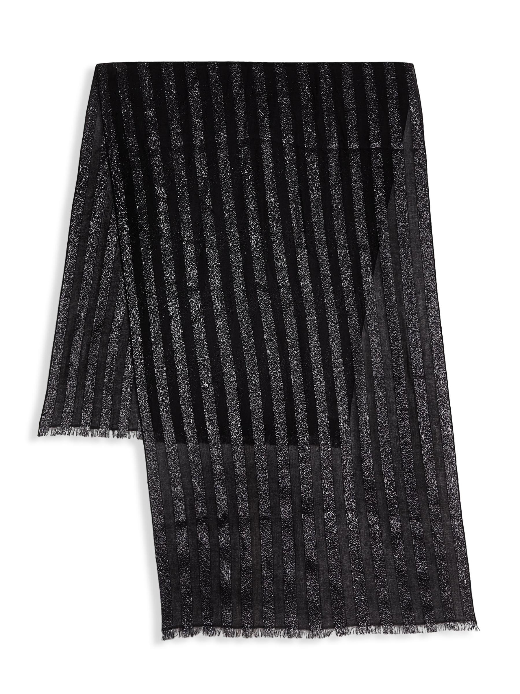 From the New Beginnings Collection. The Skyline scarf from Jane Carr is knit from a luxe cashmere blend with metallic lurex stripes.