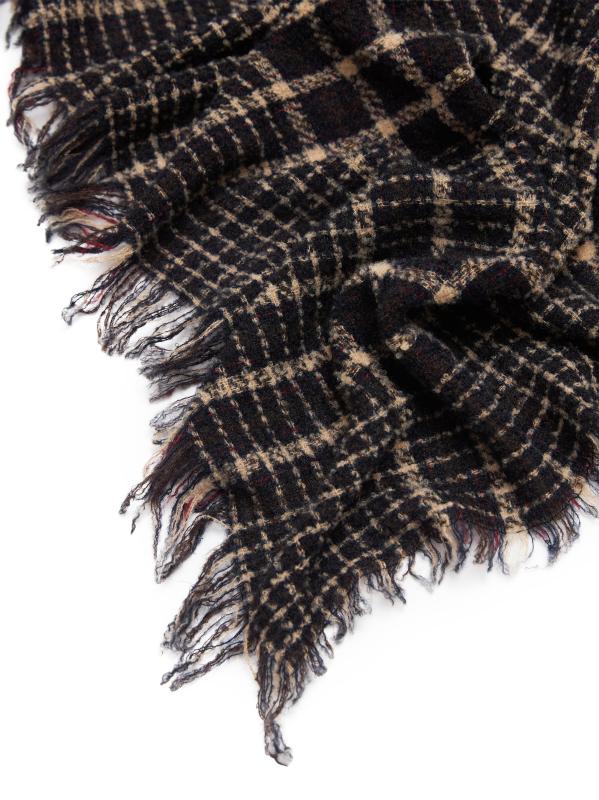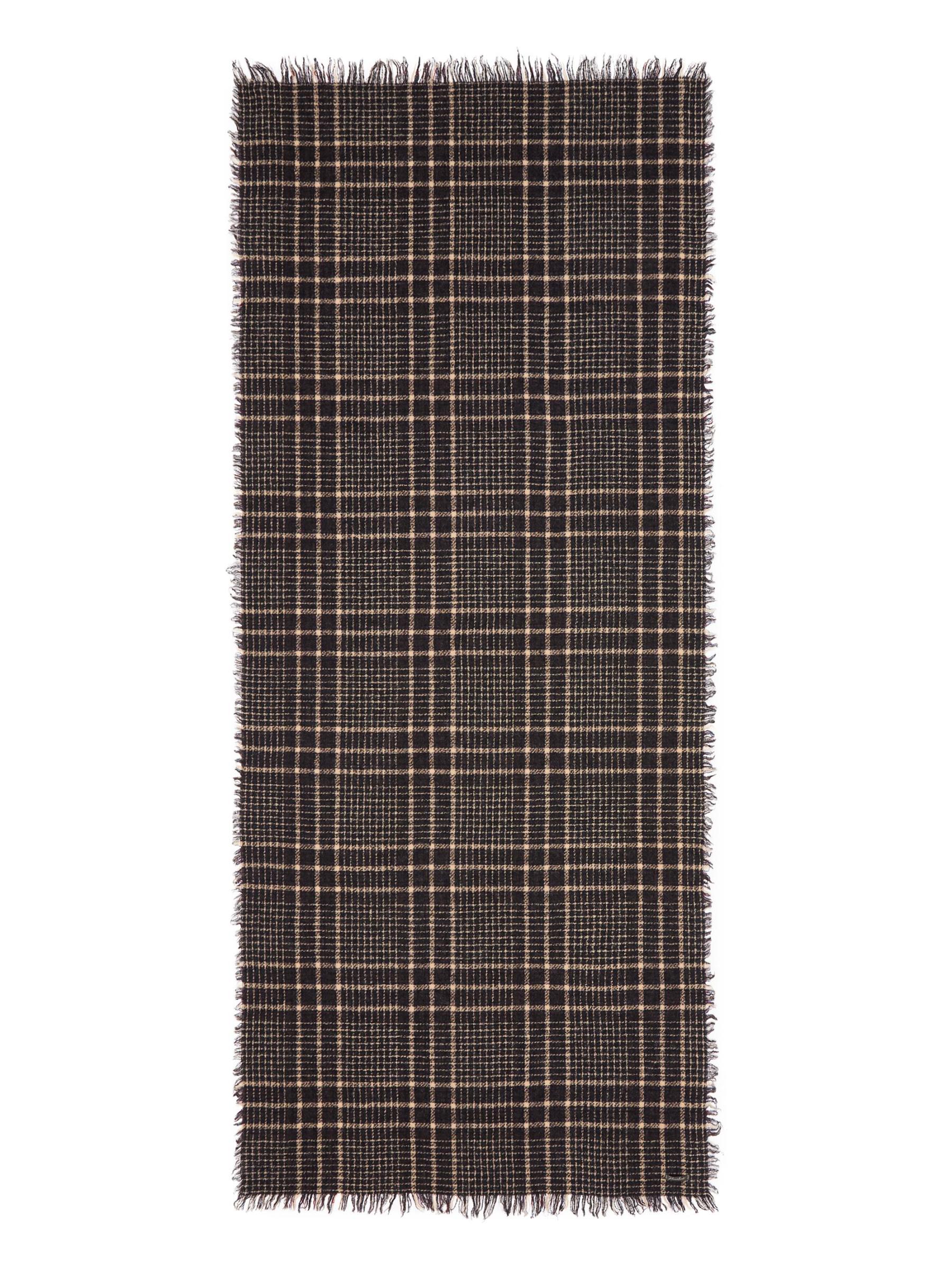 Made in Italy, Faliero Sarti's New Perry scarf is crafted of a plaid virgin wool-cahsmere blend and styled wtih frayed trim.
