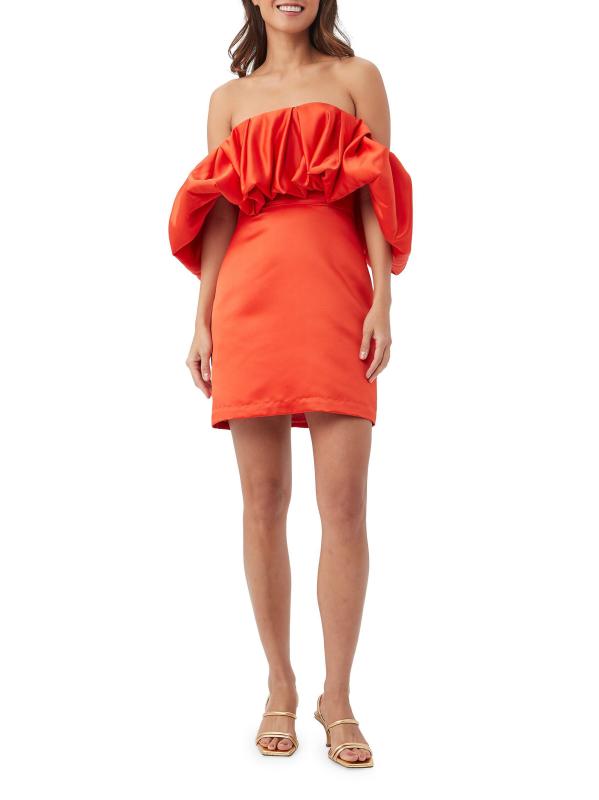 Defined by a voluminous bubbled off-the-shoulder neckline, Trina Turk's Nia mini dress is complete with an A-line skirt.