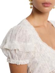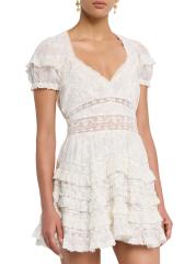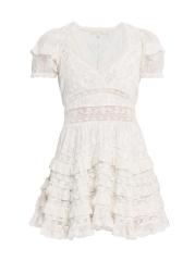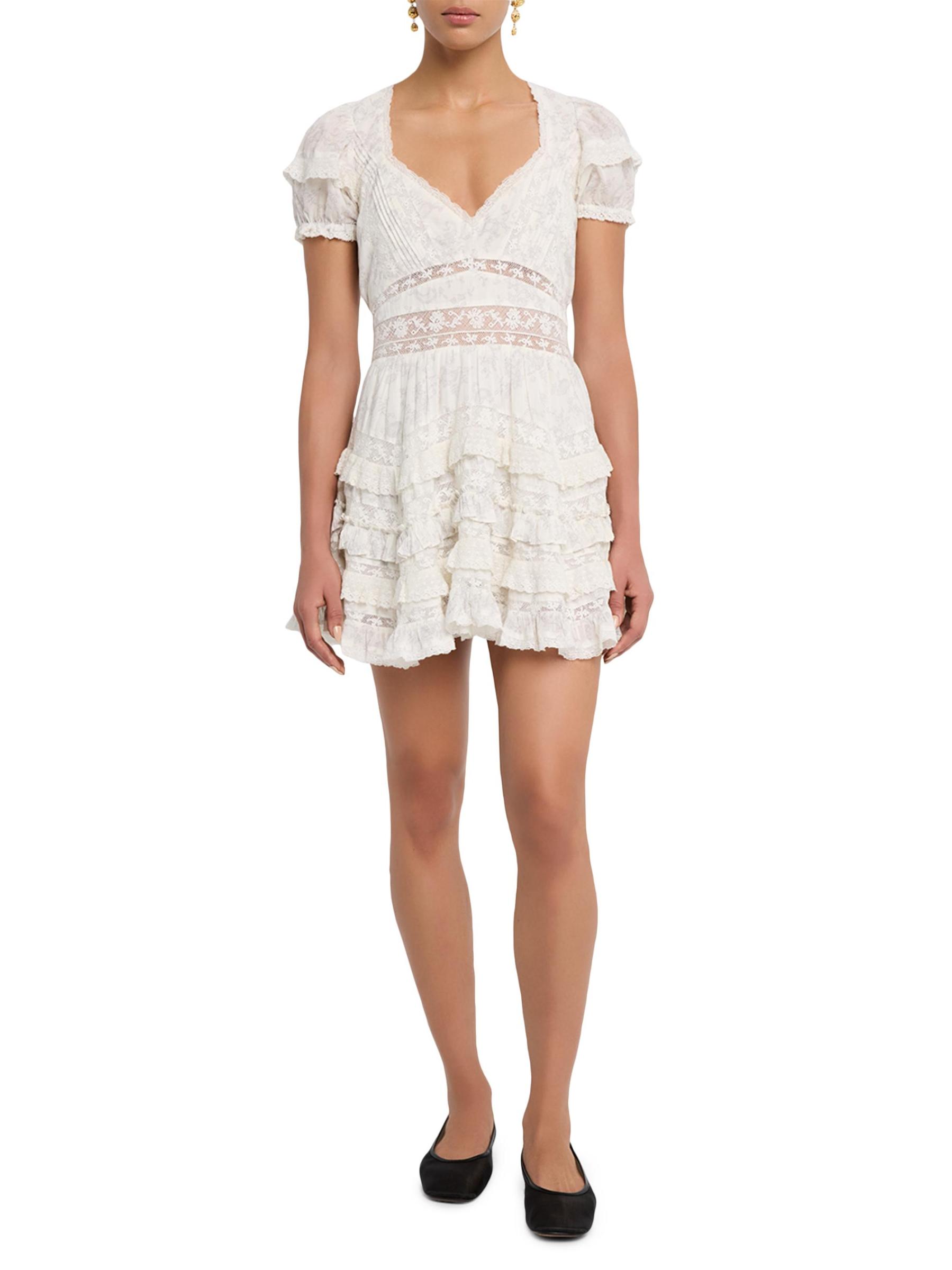 Designed with a Victorian-inspired look, the Nivara minidress from LoveShackFancy is crafted of cotton voile lace and styled with intricate vintage-style lace striping.Sweetheart neckline Short puff sleeves Banded waist Tiered ruffled skirt Smocked back Pulls over 100% Cotton Lining: 100% Cotton Hand wash Imported