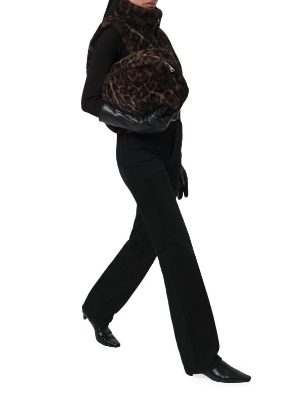 The jumbo Noor pochette from Apparis is crafted of plush faux fur.