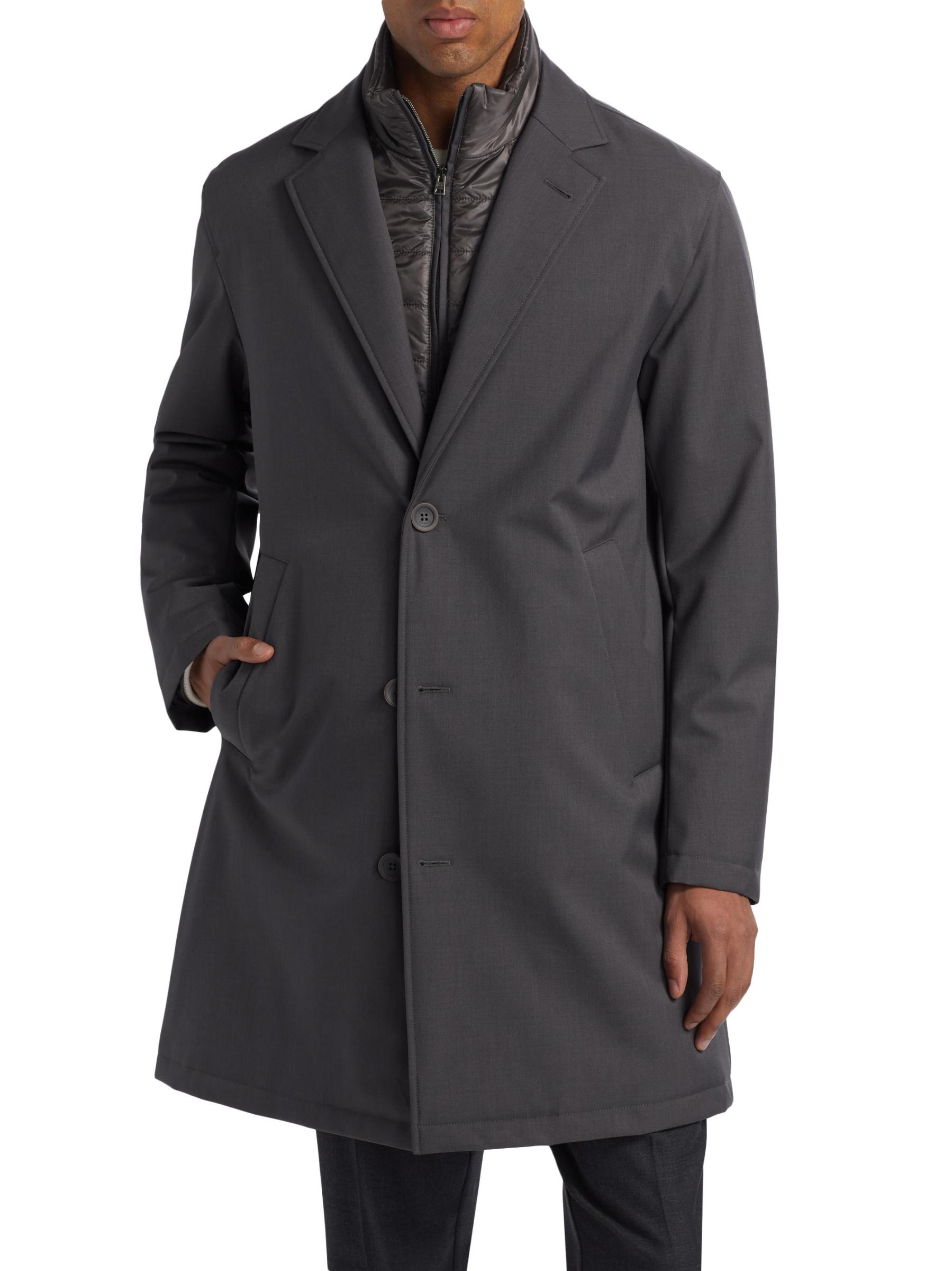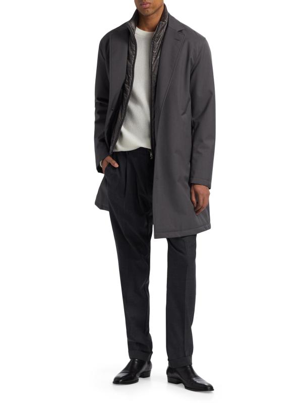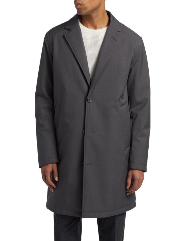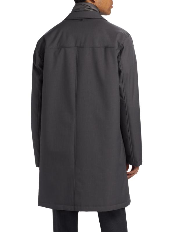 This top coat from Hanro is crafted of nylon twill in a single-breasted silhouette. A removable interior windguard lends a modern touch to this style.Notch lapels, stand collar Long sleeves Side slant pockets Removable windguard Button-front closure, interior zip closure 100% polyester Membrane: Polyurethane Secondary fabric: 100%nylon Padding: 100% polyester Lining: 100% Nylon Machine wash Made in Italy