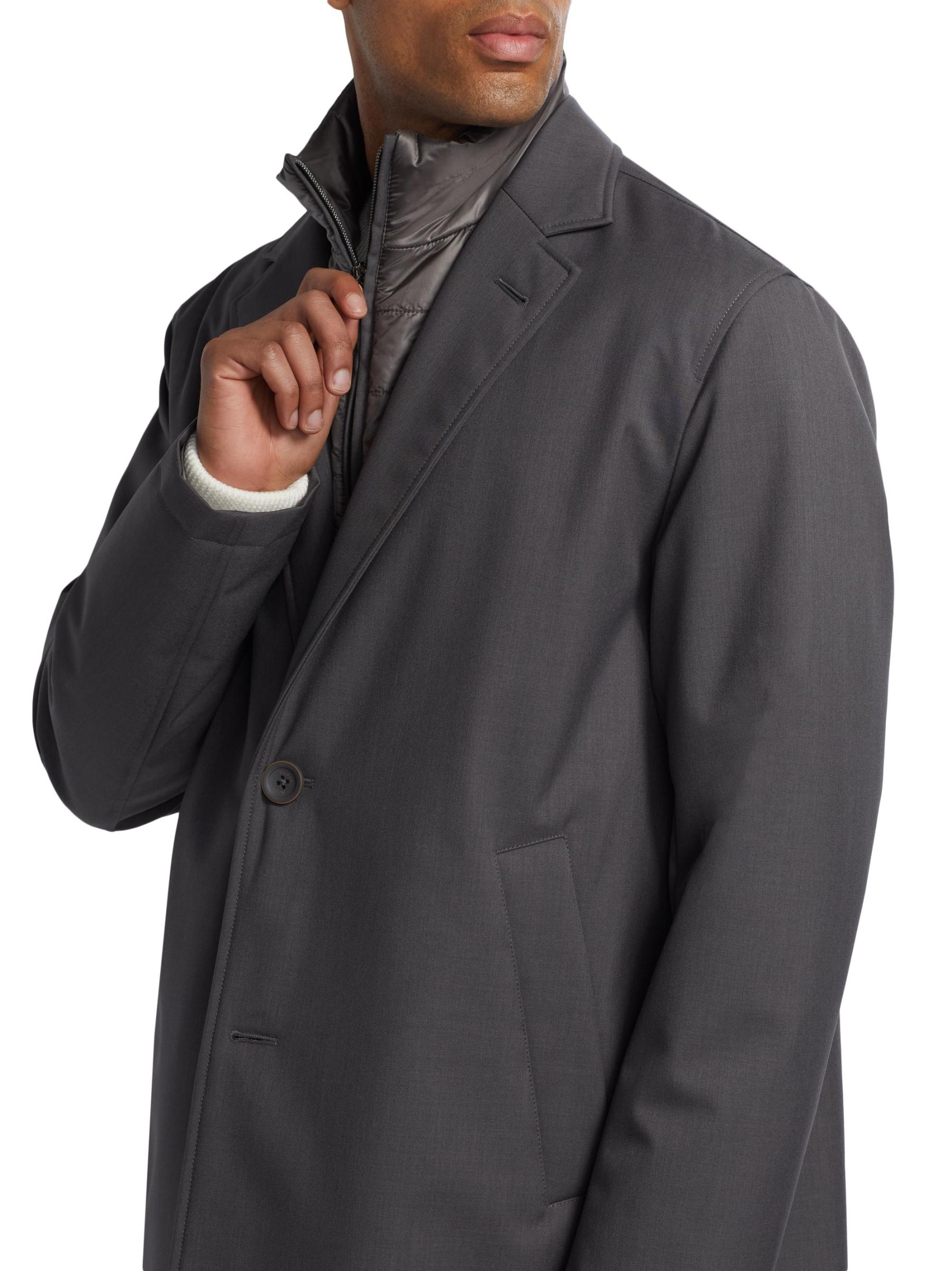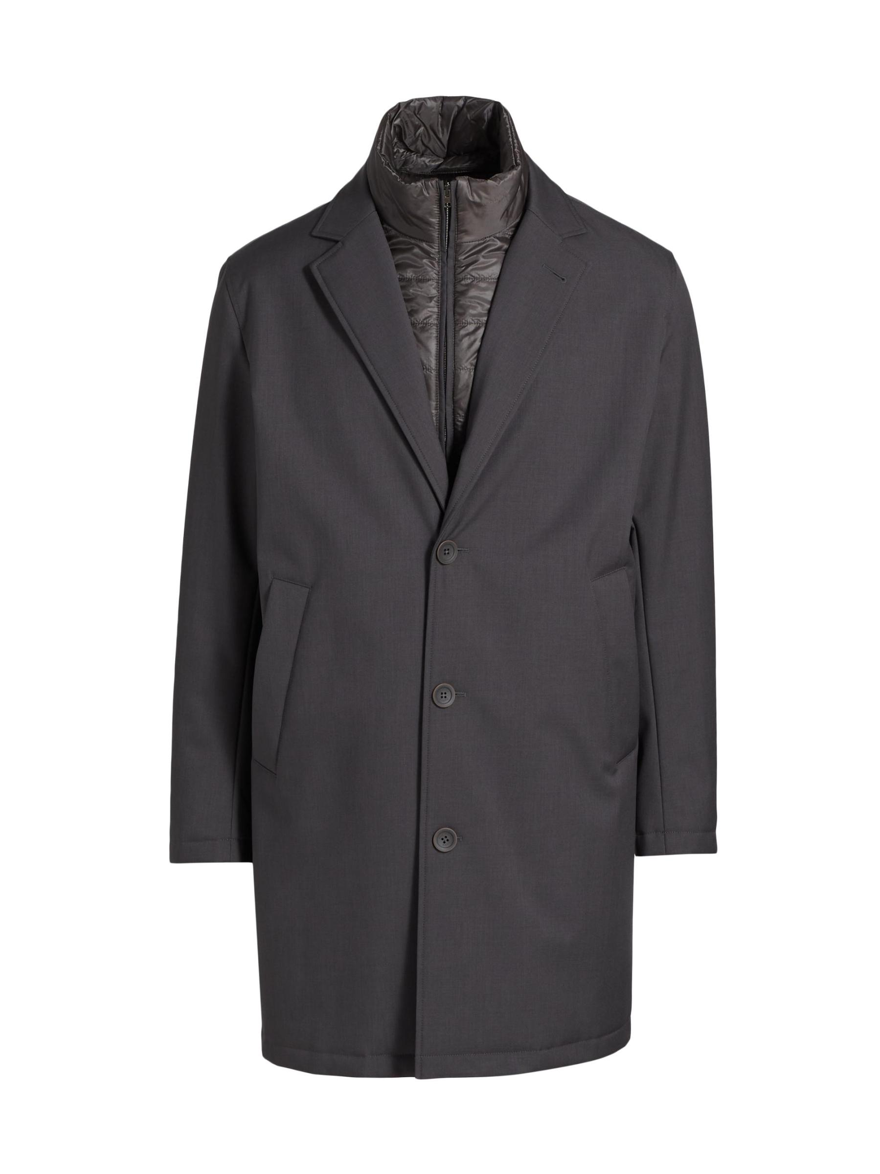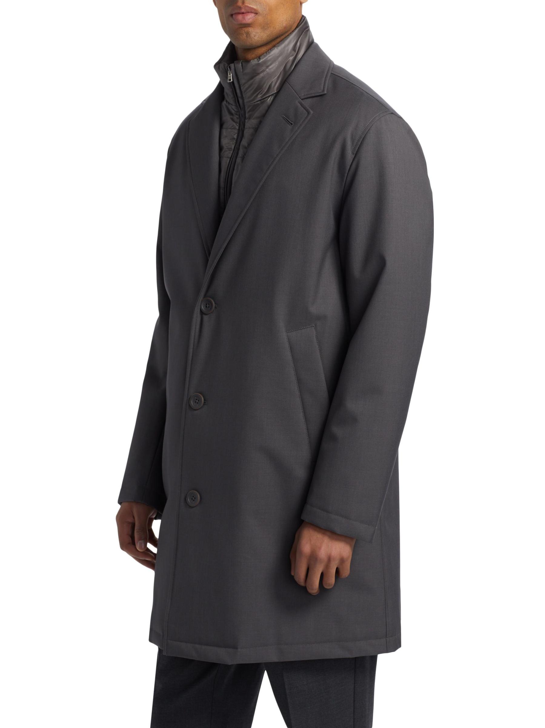 This top coat from Hanro is crafted of nylon twill in a single-breasted silhouette. A removable interior windguard lends a modern touch to this style.Notch lapels, stand collar Long sleeves Side slant pockets Removable windguard Button-front closure, interior zip closure 100% polyester Membrane: Polyurethane Secondary fabric: 100%nylon Padding: 100% polyester Lining: 100% Nylon Machine wash Made in Italy