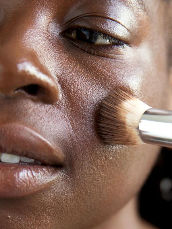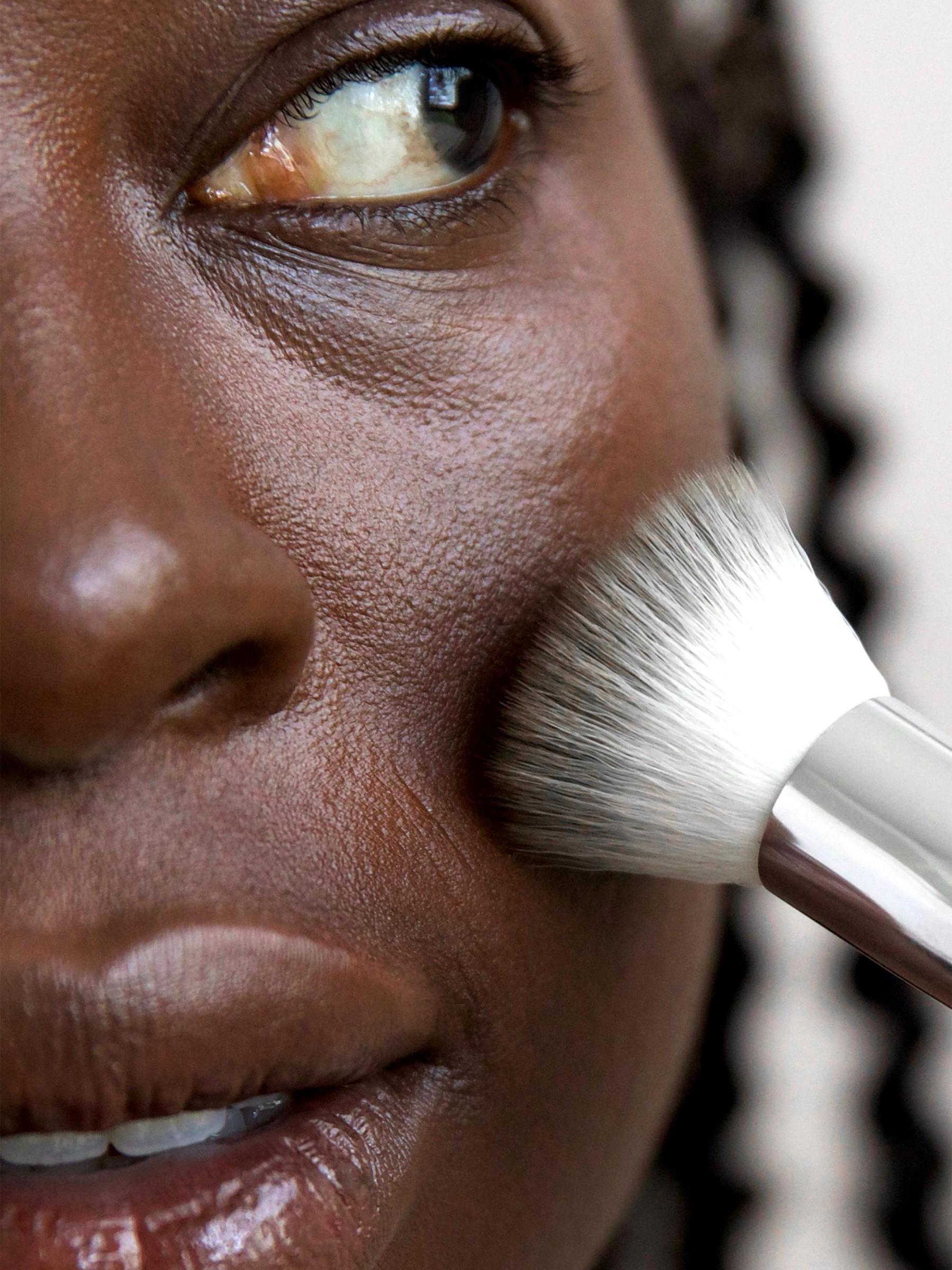 Put a pea-sized amount of oat milk foundation onto the hand. Dot the foundation onto the face with the Eco Vegan Multipurpose Brush (sold separately) on the cheeks, forehead, chin, and along the nose. Alternatively, warm the formula with the tips of the fingers and press it into the skin for that flawless finish. Blend in with circular movements for even coverage over the whole face to create a natural base.