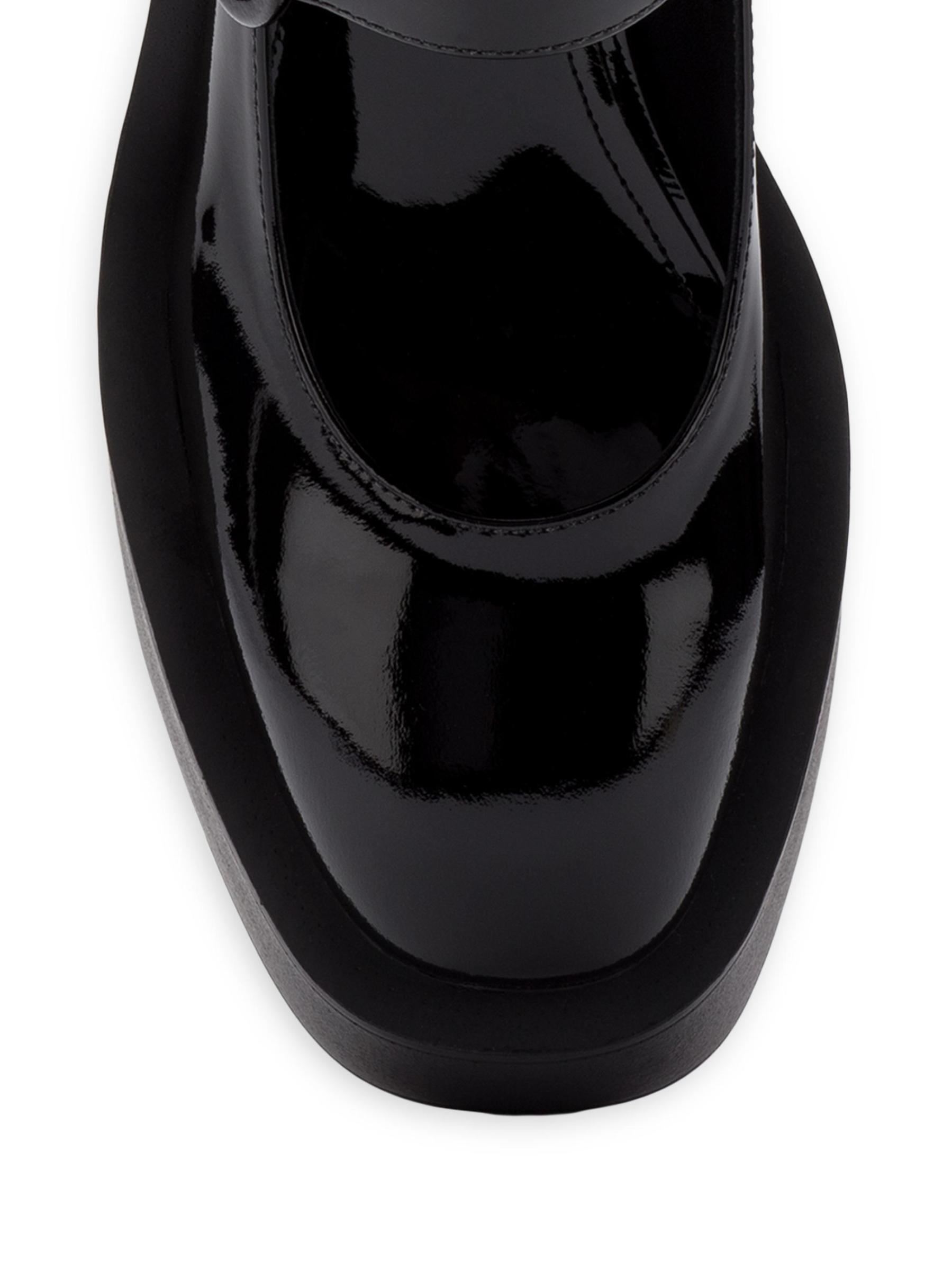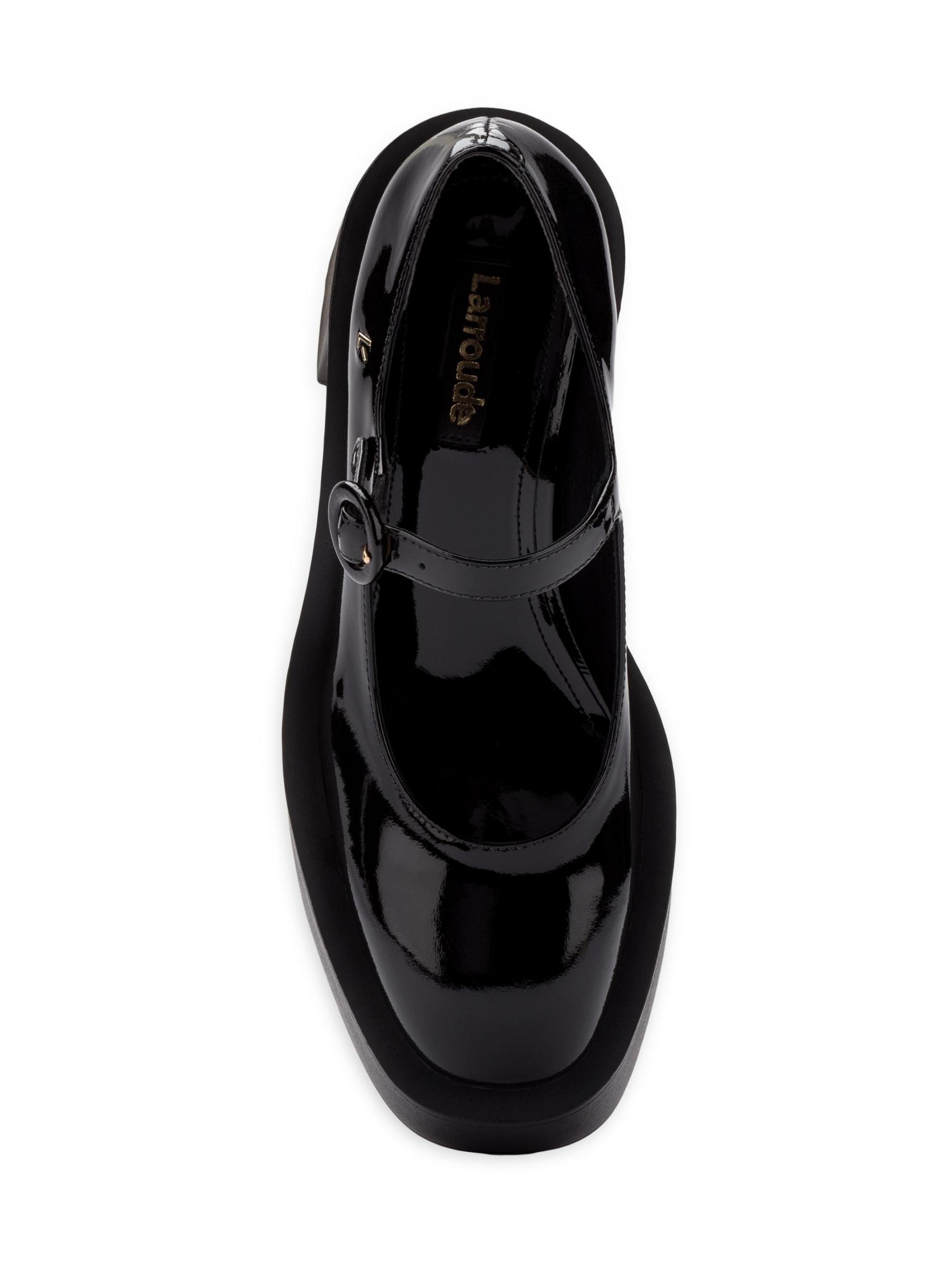 Crafted of shiny patent leather, Larroudé's Olivia Mary Jane pumps are finished with a thick lug sole.