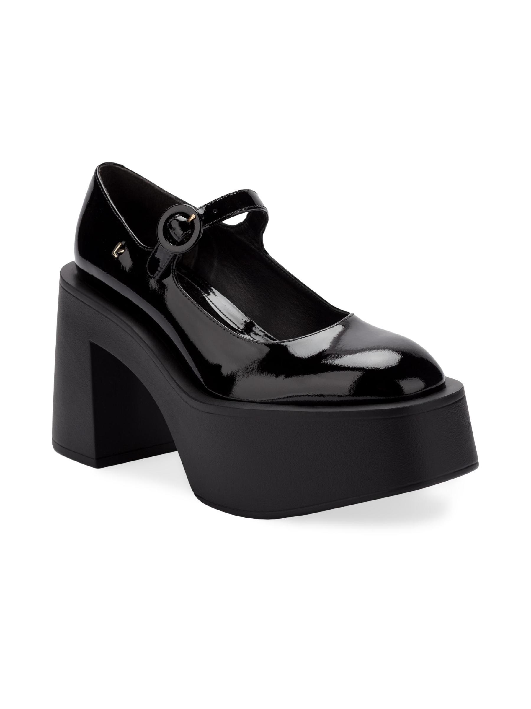 Crafted of shiny patent leather, Larroudé's Olivia Mary Jane pumps are finished with a thick lug sole.Patent leather upper Round toe Adjustable buckle Rubber sole Imported