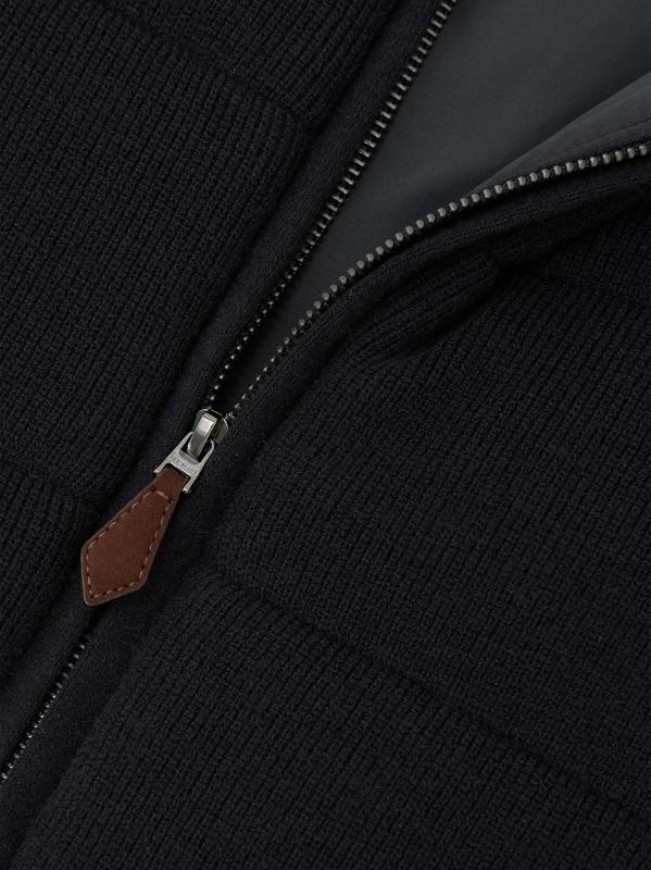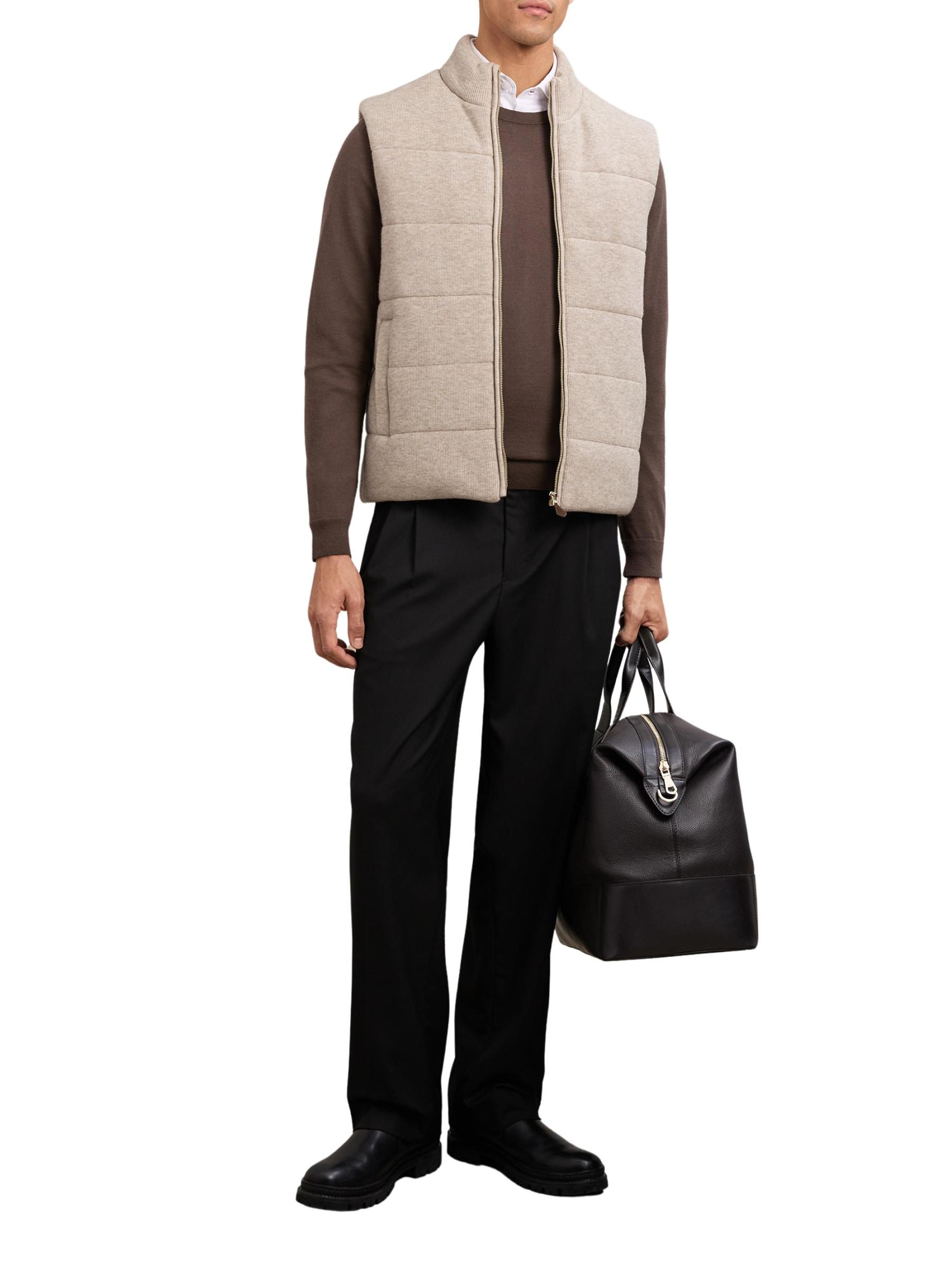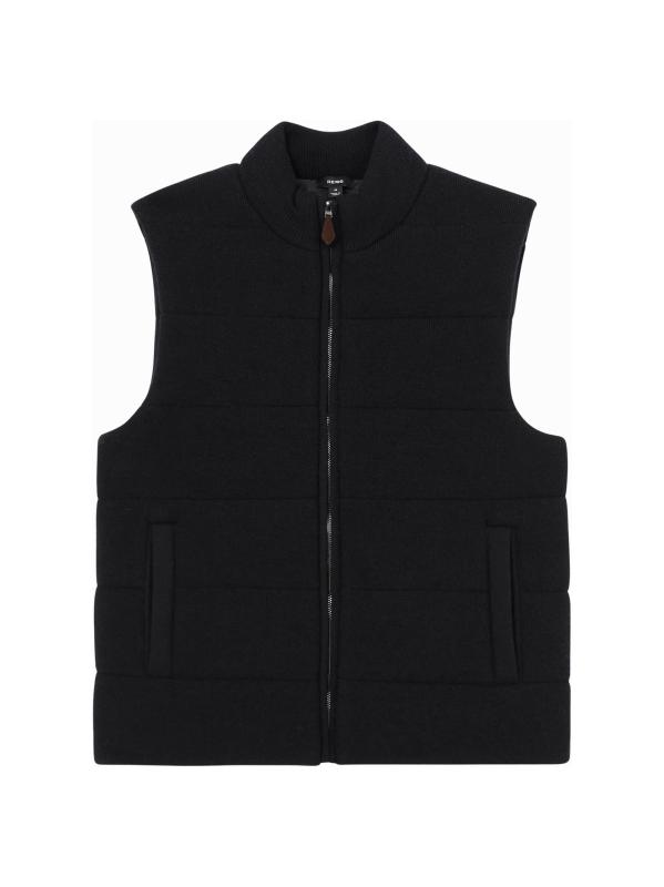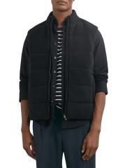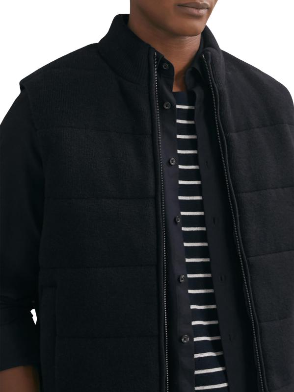 This Otley vest from Reiss features a padded rib-knit design. A stand collar, side vertical welt pockets, and front full-zip closure complete this style.