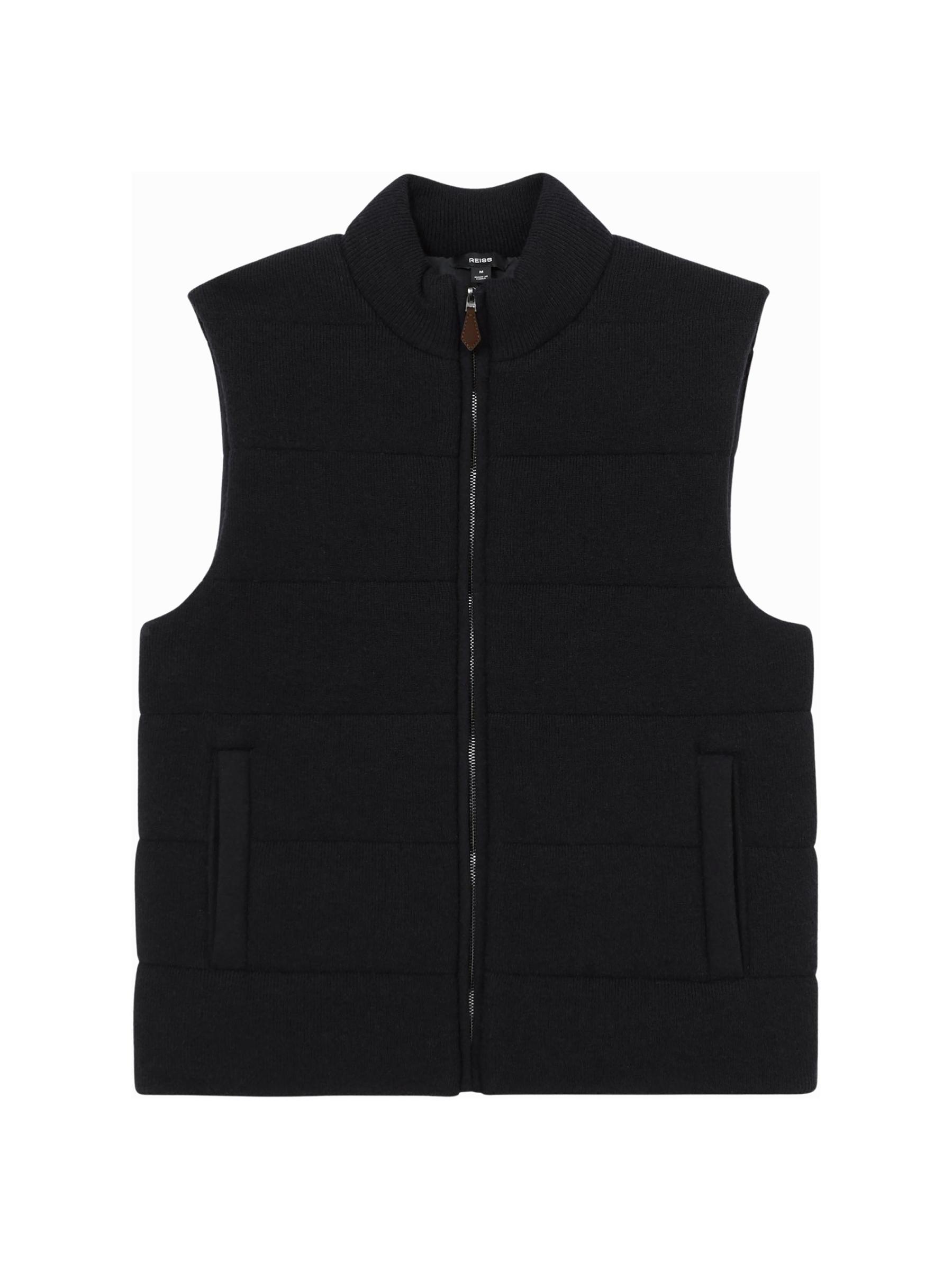 This Otley vest from Reiss features a padded rib-knit design. A stand collar, side vertical welt pockets, and front full-zip closure complete this style.Stand collar Sleeveless Side vertical welt pockets Front zip closure 30% polyester/25% acrylic/22% viscose/16% polyamide/7% wool Trim: 28% polyamide/25% polyester/21% acrylic/19% viscose/6% wool/1% elastane Lining: 100% polyester Filling: 100% polyester Hand wash Imported