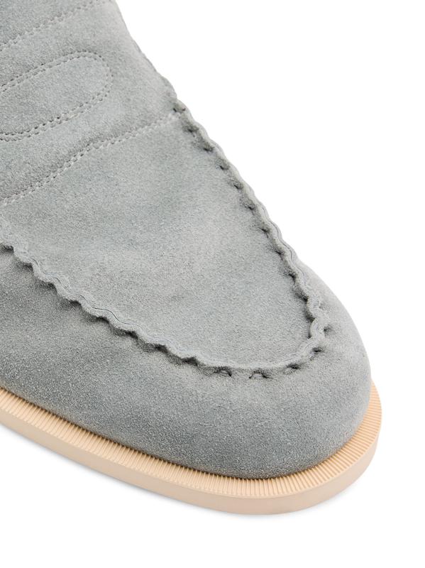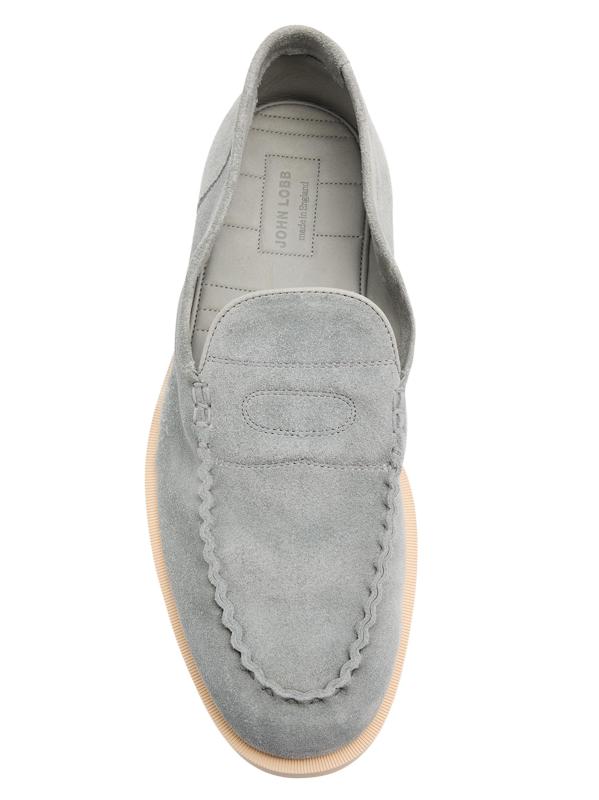 John Lobb's Pace loafers are crafted of suede with a top-stitched penny strap design. A rubber sole lends added comfort to this pair.