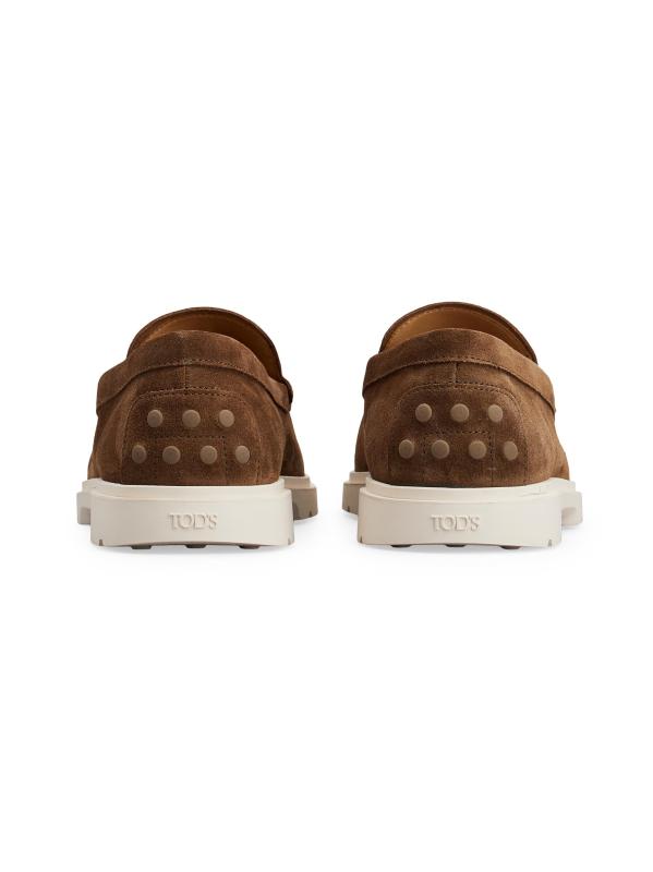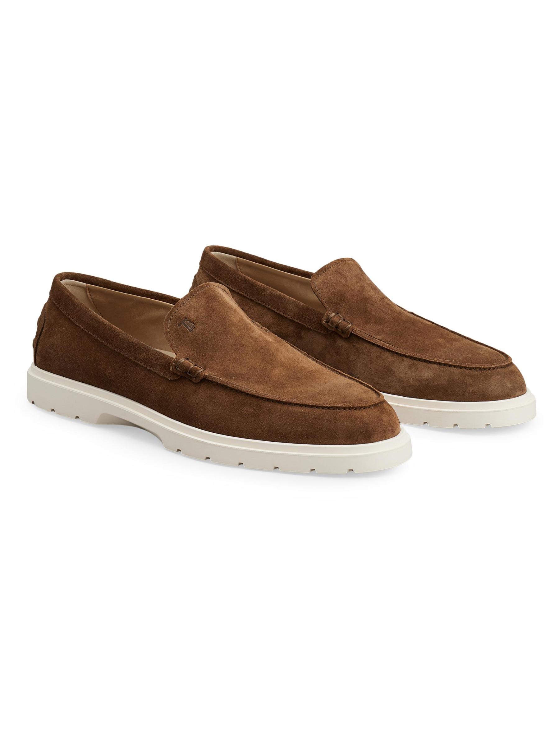 A contrast lug sole lends sporty appeal to these Pantofola loafers from Tod’s. Crafted of soft suede, the sleek style is designed with an almond toe.Almond toe Slips on Suede upper Leather lining Rubber sole Made in Italy