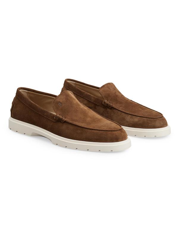 A contrast lug sole lends sporty appeal to these Pantofola loafers from Tod’s. Crafted of soft suede, the sleek style is designed with an almond toe.