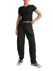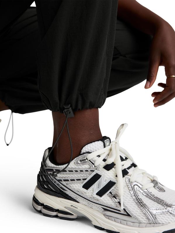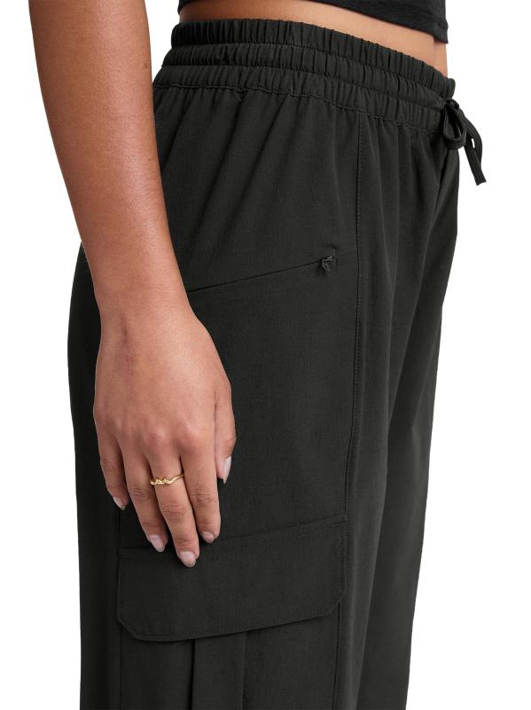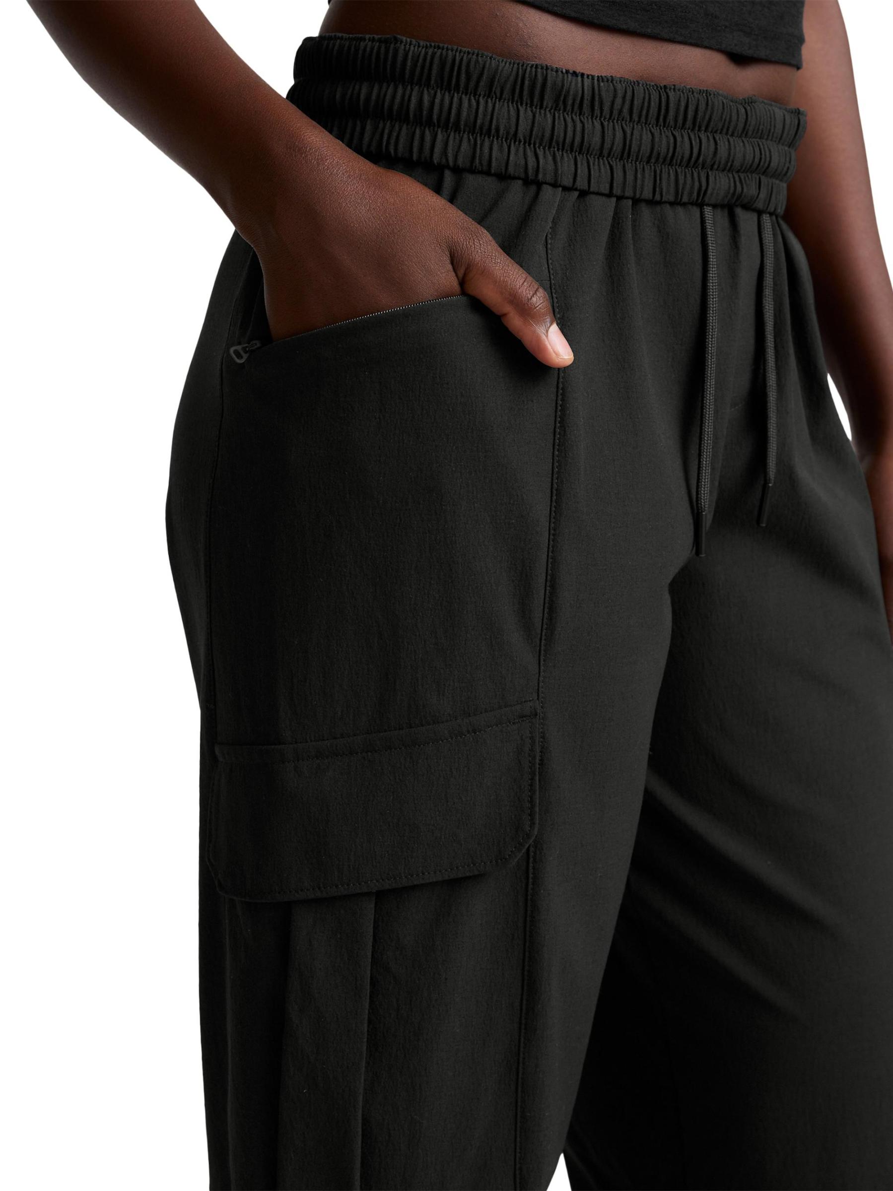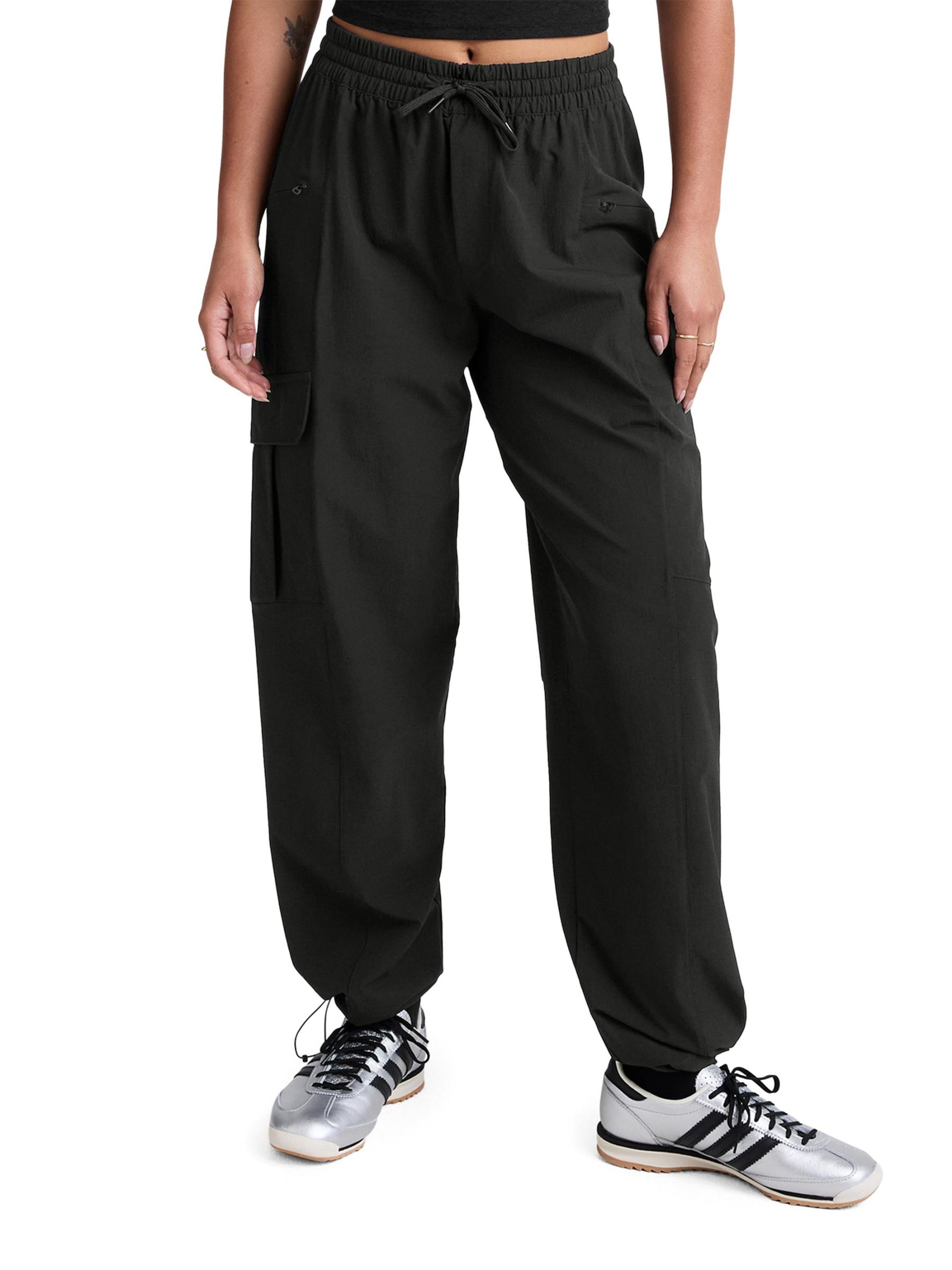 Beyond Yoga's Peak cargo pants highlight the relaxed, mid-rise fit with a stretch drawstring waistband, flap cargo pockets, and sleek zip pockets.
