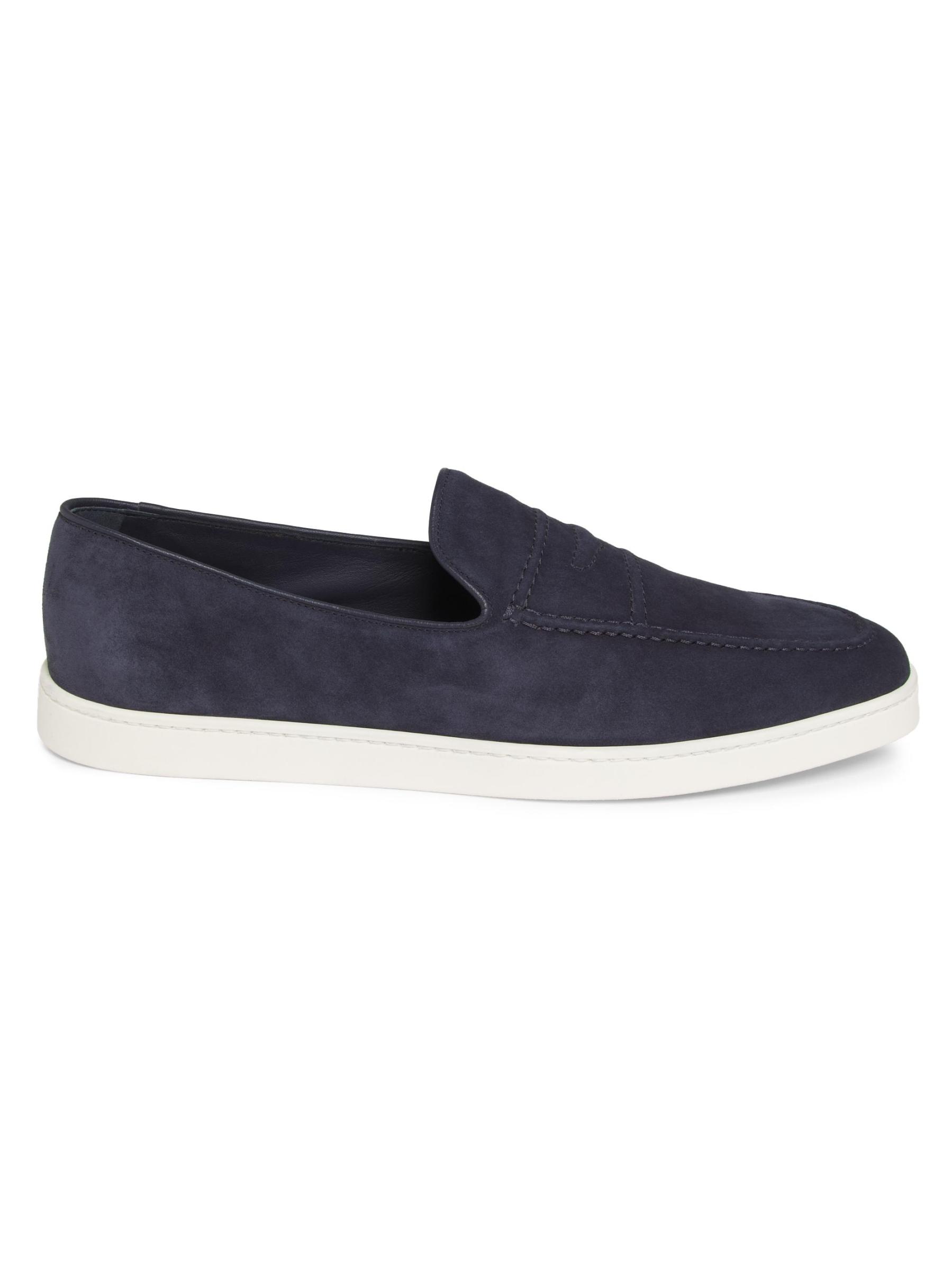 Church's Peebles penny loafers are crafted of suede ans styled with a top-stitched keeper strap. Made in Italy, this pair sits on a rubber sole for added comfort.Round toe Slips on Suede upper Rubber sole Made in Italy