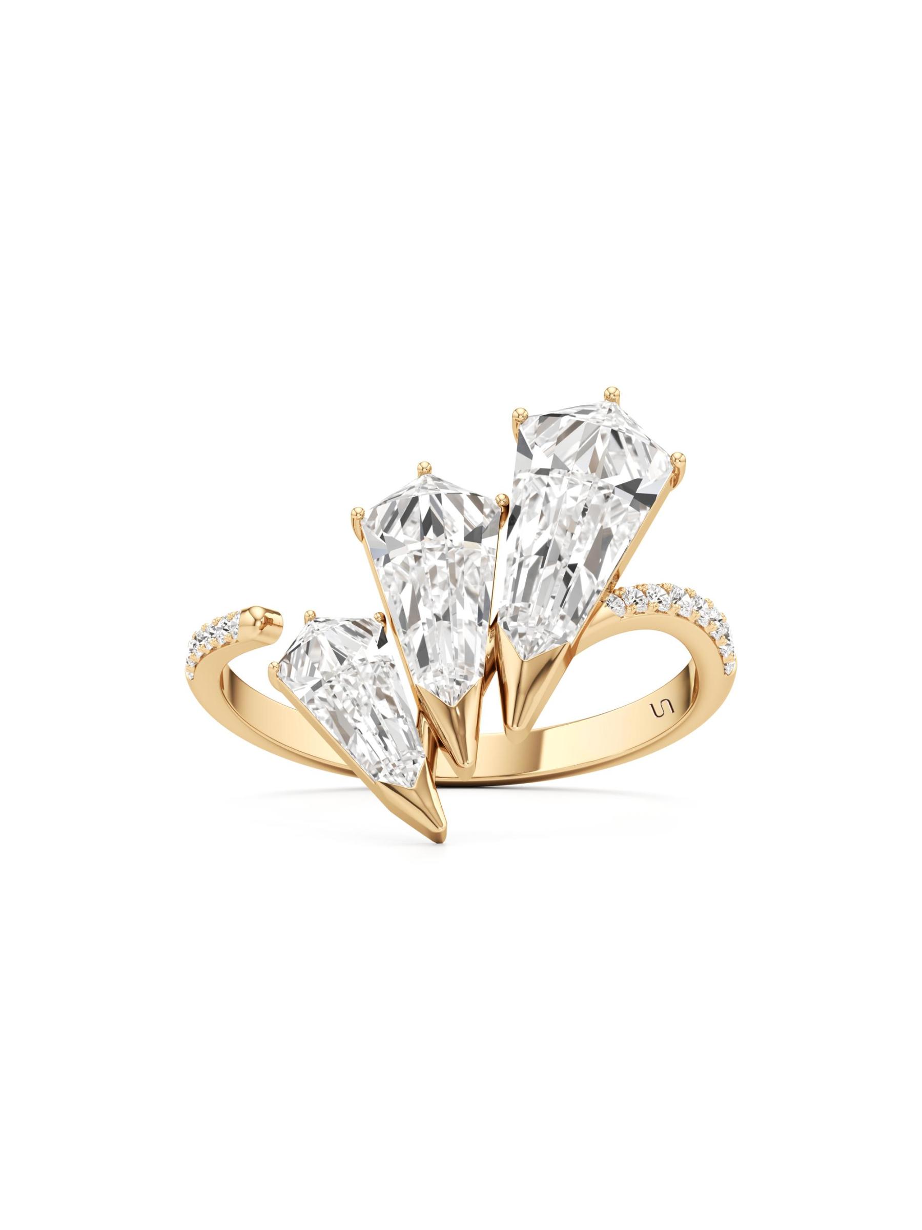 From the Phoenix Collection. Unsaid's exquisite cuff ring is handcrafted of 18K yellow gold set with sparkling lab-grown diamonds. These dazzling gemstones showcase the label's signature Phoenix cut, designed to catch and transmit increasing light for maximum brilliance.
