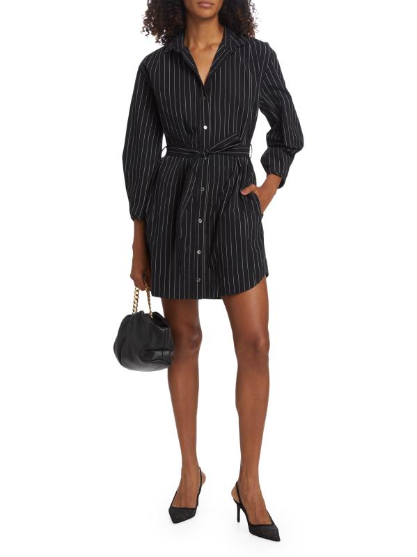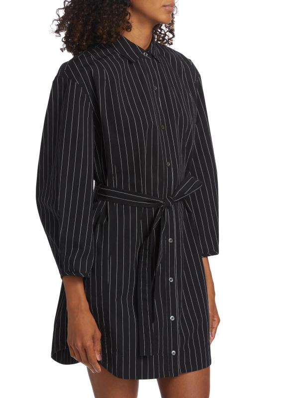 Archetypal pinstripes lend style to ATM Anthony Thomas Melillo's mini shirtdress, cut from heavy cotton poplin with a self-tie belt to define the waist.