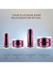 Begin with Platinum Rare Eye Elixir to instantly deliver a gentle tightening sensation. Continue with Platinum Rare Eye Cream, a luxurious treatment that illuminates the eye area in just 15 minutes. This powerful duo reveals a lifted, smoother, and youthful-looking eye area with continued use. Next, proceed with Platinum Rare Elixir, which immediately restores the skin’s radiant glow while working over time to refine firmness, elasticity, and youthful contours. Complete the ritual with Platinum Rare Cream, a masterpiece of rejuvenation that smooths the appearance of wrinkles, restores suppleness, and enhances firmness for visibly youthful, revitalised skin.