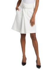 Comme des Garçons' pleated skirt highlights the waist with a tonal adjustable belt.