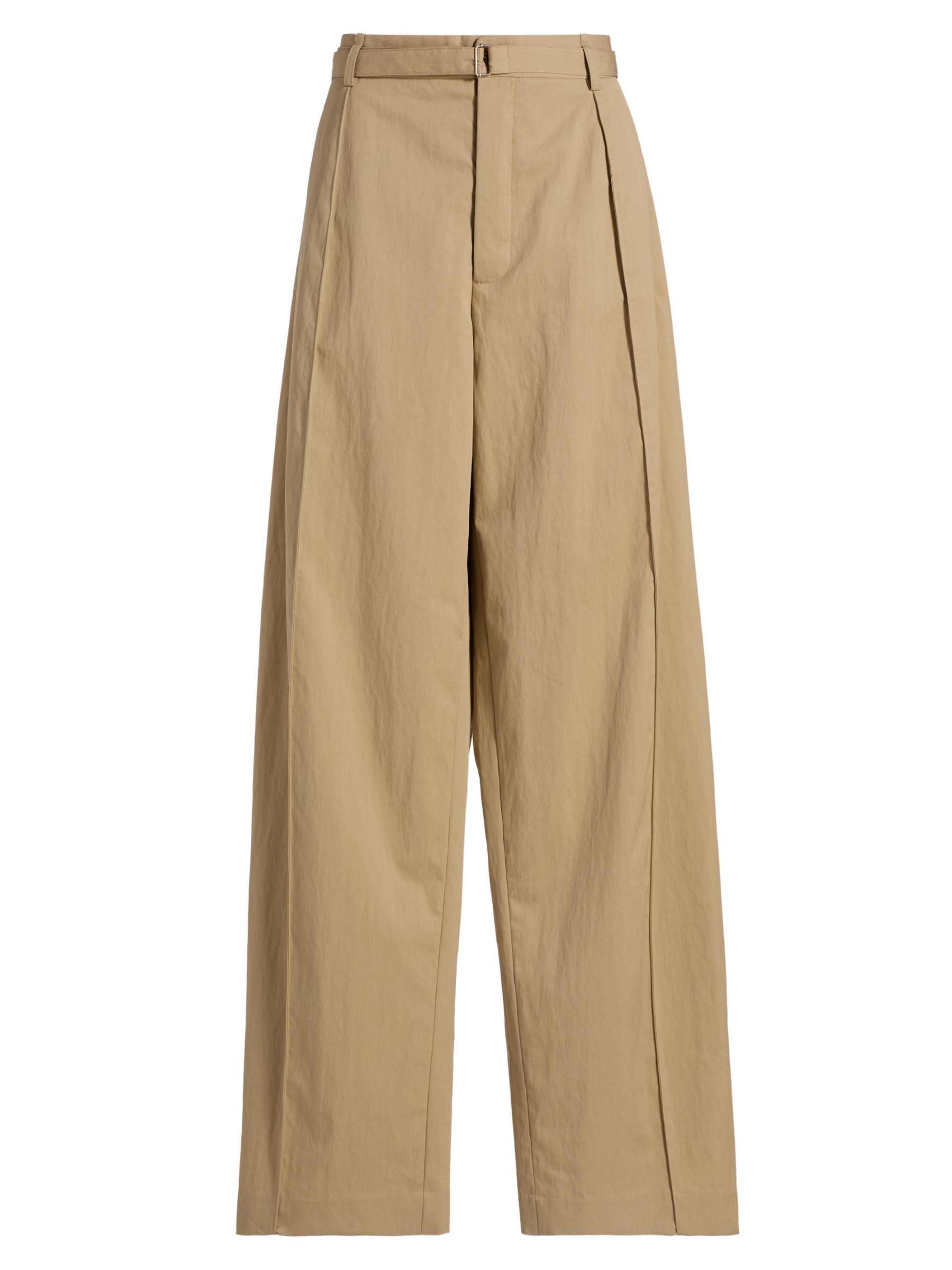 These wide-leg pants from Co are crafted of cotton blend and feature a pleated silhouette.Belt loops Side slip pockets Back welt pockets Zip fly hook-and-bar closure 72% cotton/28% nylon Dry clean Imported