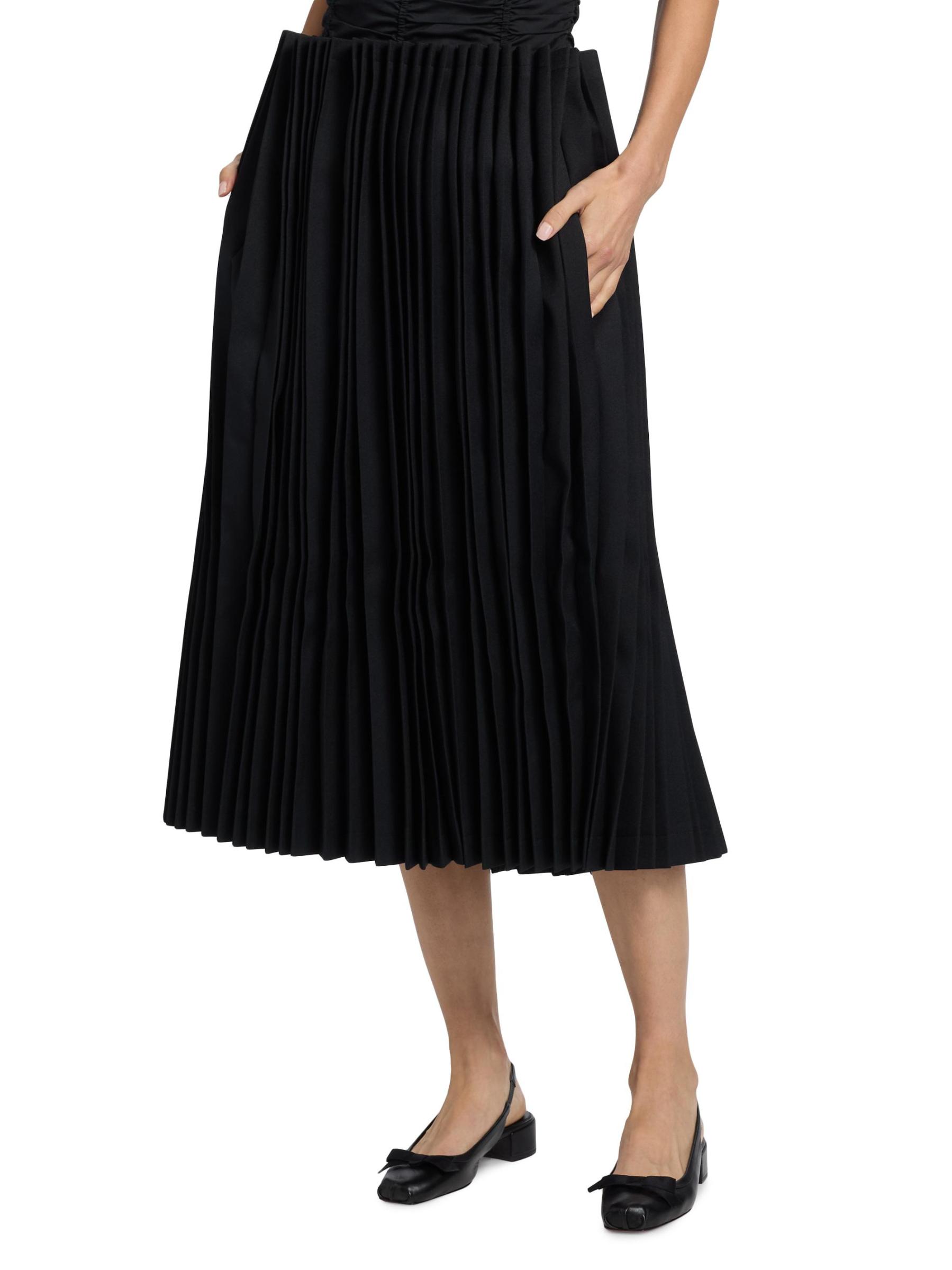 Cut in an A-line silhouette, this midi-skirt from Comme des Garçons is styled with a godet accordion pleated design, featuring an interior elastic waistband.