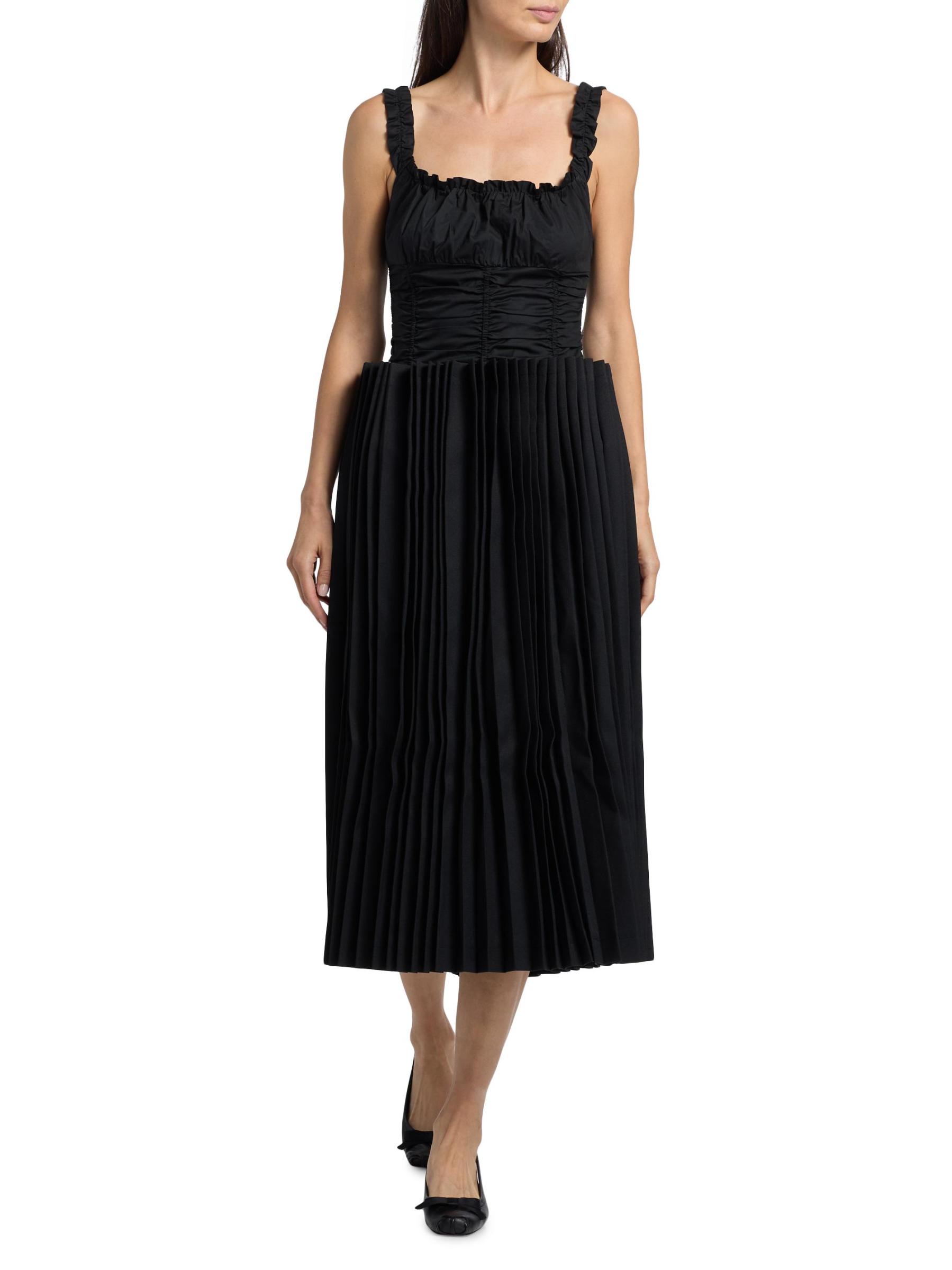 Cut in an A-line silhouette, this midi-skirt from Comme des Garçons is styled with a godet accordion pleated design, featuring an interior elastic waistband.Elasticized waist Back zip closure 100% polyester Hand wash Made in Japan