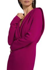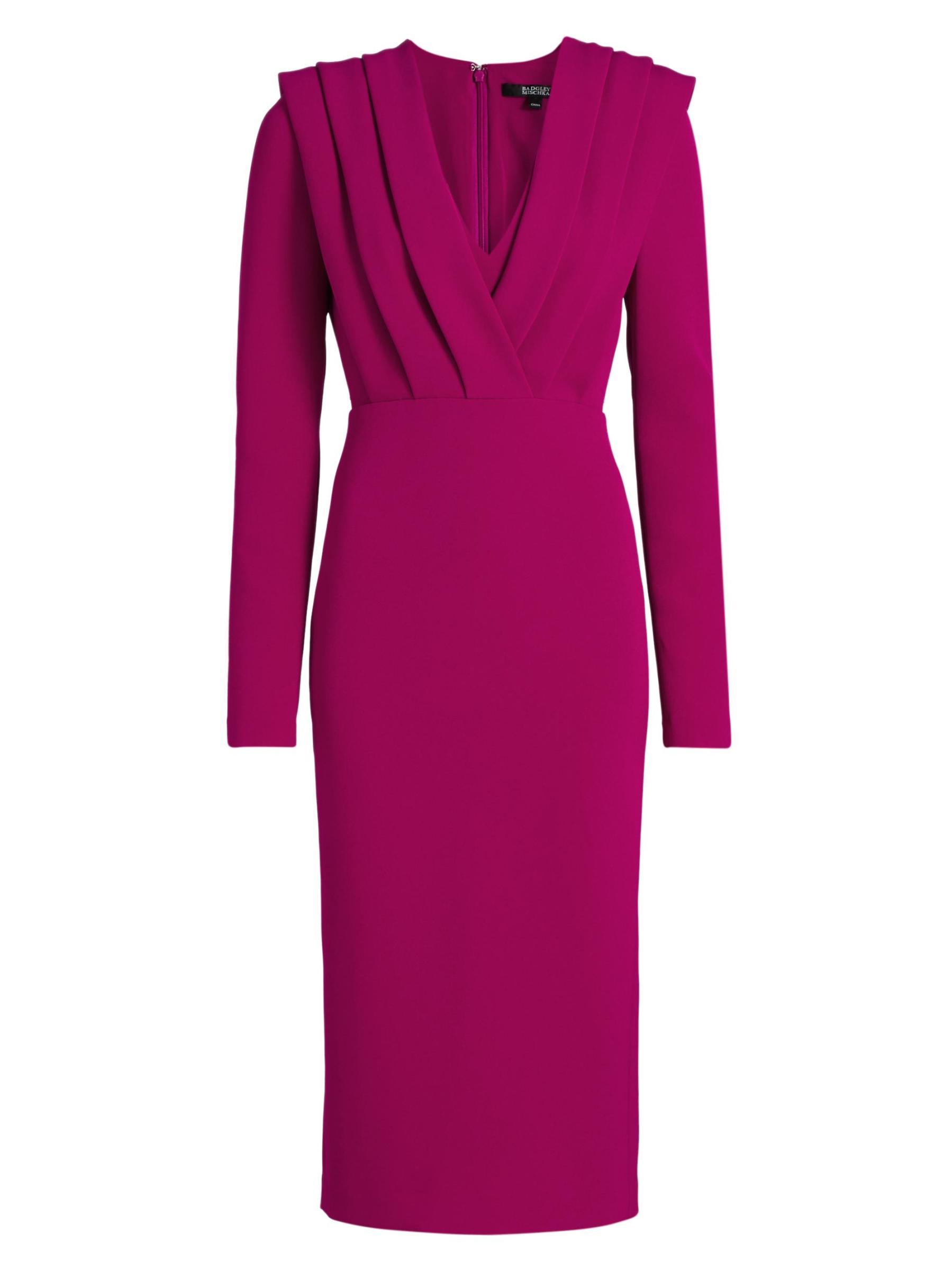Badgley Mischka’s midi-dress is crafted of stretch crepe and styled with a V-neck and a pleated bodice.V-neck Long sleeves Back zip closure 98% polyester/2% spandex Dry clean Imported