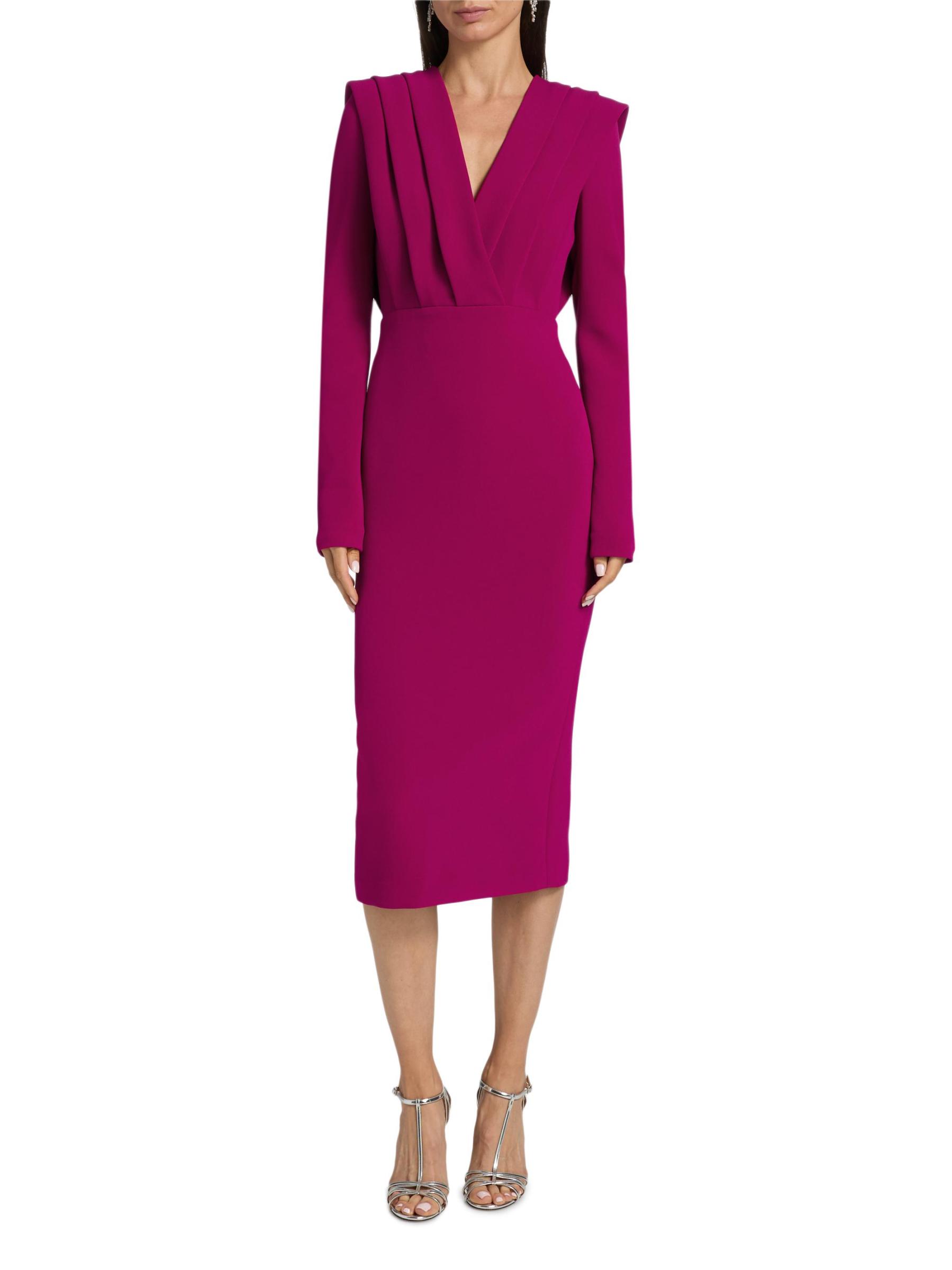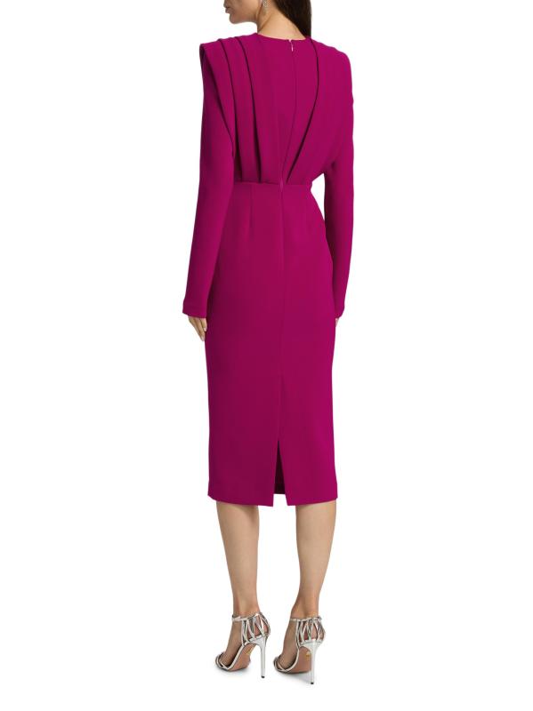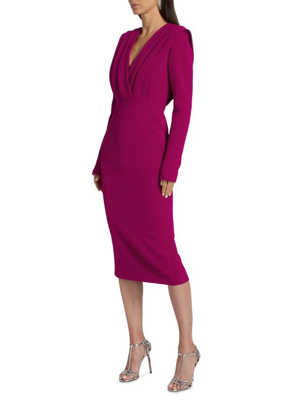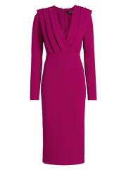 Badgley Mischka’s midi-dress is crafted of stretch crepe and styled with a V-neck and a pleated bodice.
