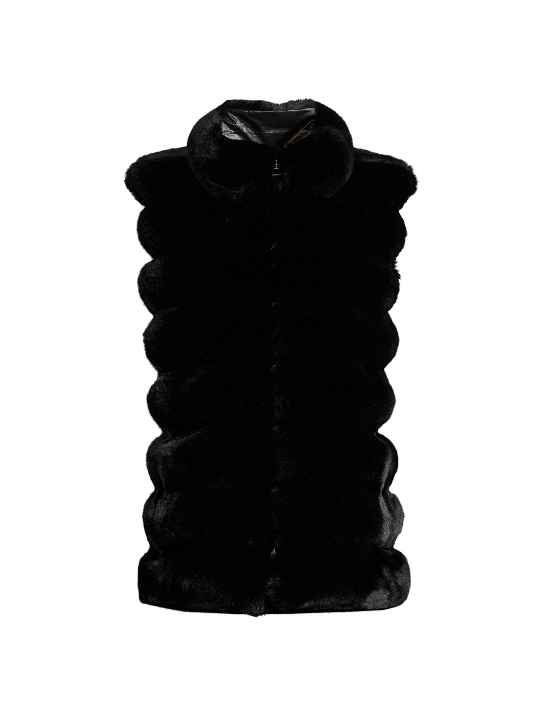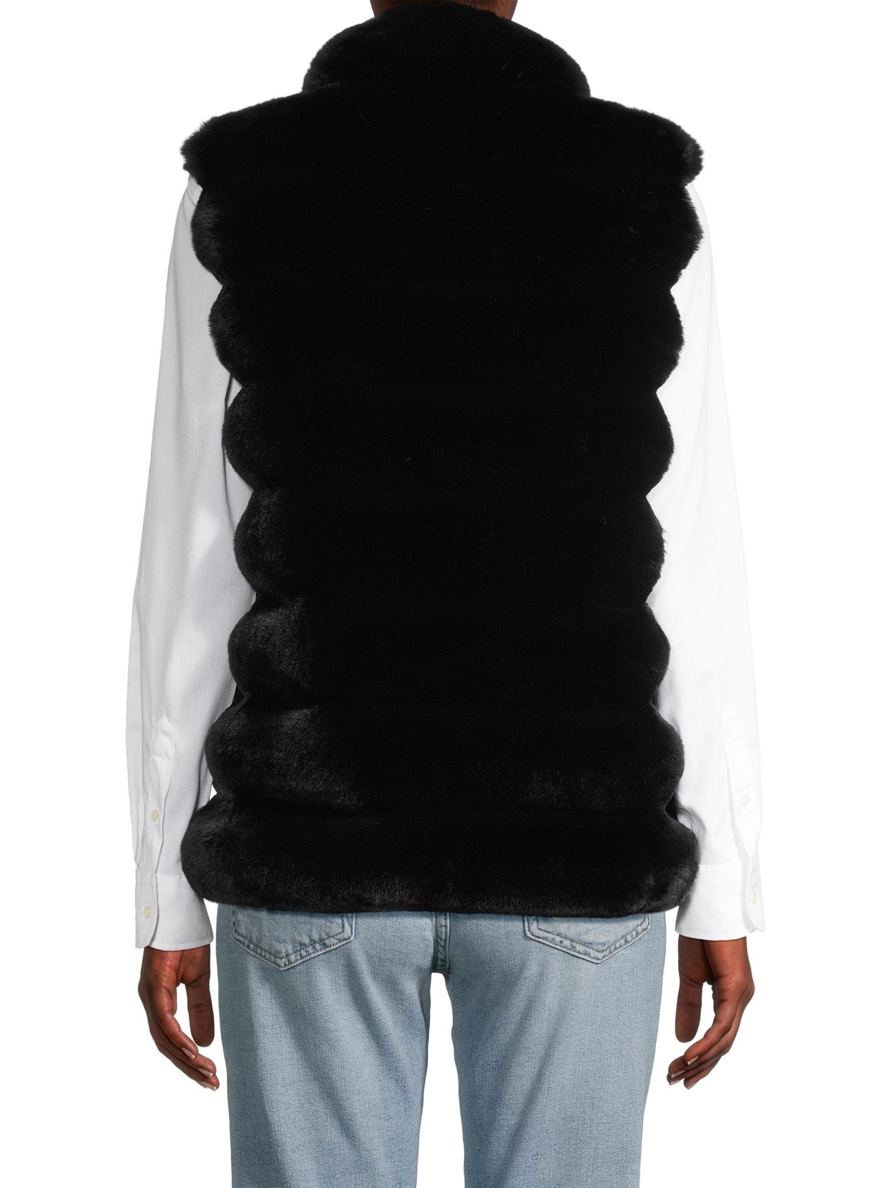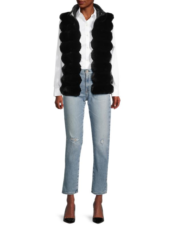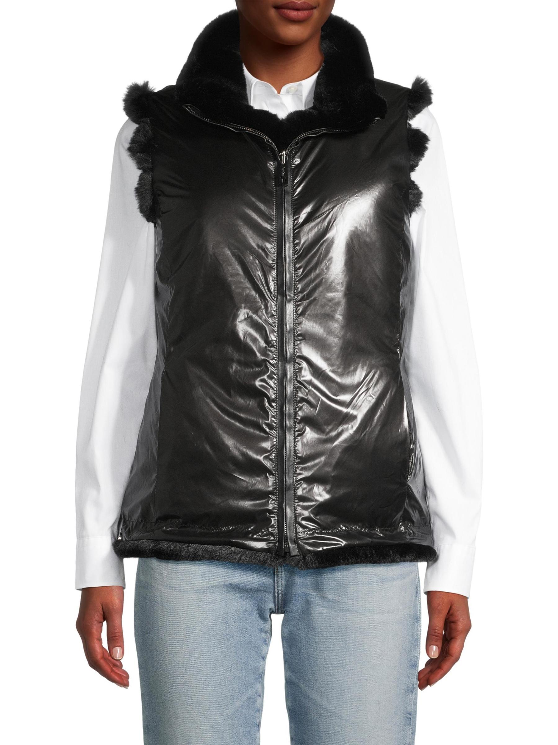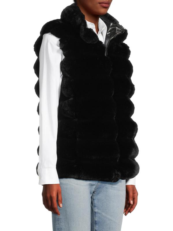 Crafted of faux chinchilla fur, this vest from Jocelyn flaunts a reversible design.