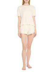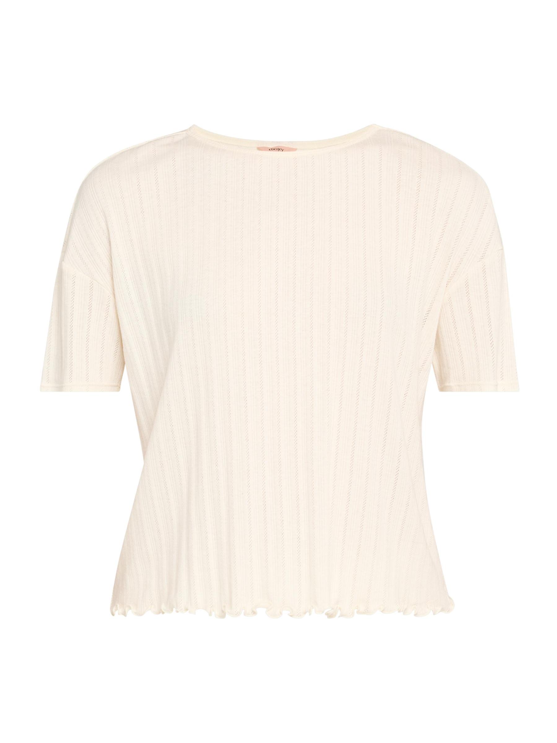 This Eberjey rib-knit crewneck T-shirt features pointelle detailing and a lettuce-edge hem.Crewneck Drop shoulders Short sleeves Lettuce edge hem Pulls over Modal Machine wash Imported