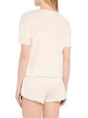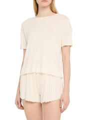 This Eberjey rib-knit crewneck T-shirt features pointelle detailing and a lettuce-edge hem.