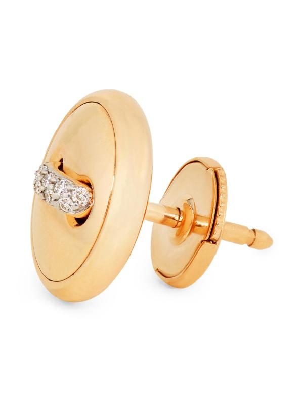 From the Pom Pom Dot Collection. Featuring a playful button-inspired design, these stud earrings from Pomellato are handcrafted of 18K rose gold accented with shimmering pavé diamonds.
