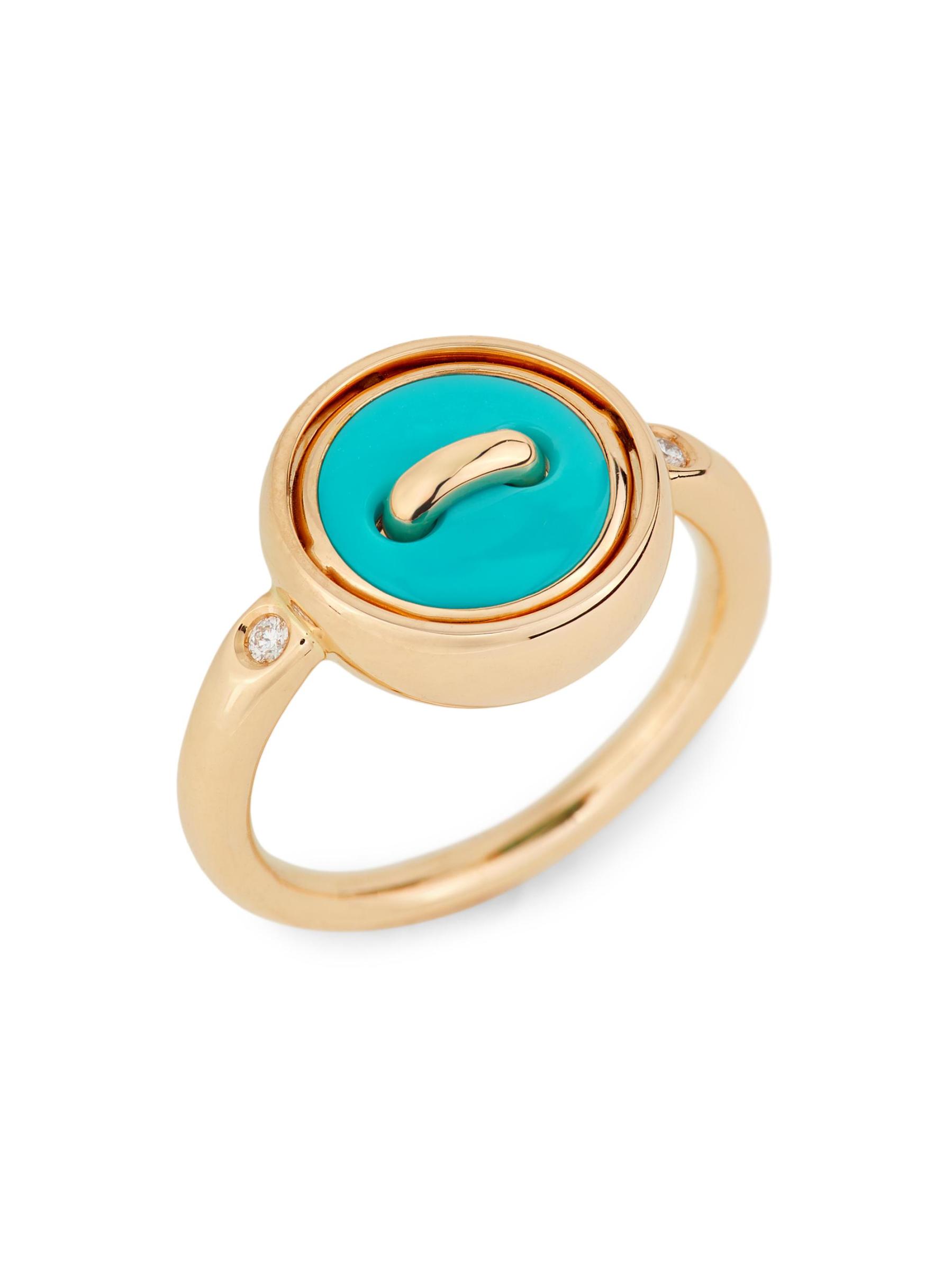 From the Pom Pom Dot Collection. Handcrafted of 18K rose gold, this ring from Pomellato features a playful button-inspired face that reverses from a polished finish with pavé diamonds to a colorful gemstone inlay.Turquoise or malachite inlay, 0.90 tcw Diamonds, 0.06 tcw 18K rose gold Made in Italy