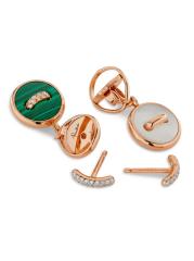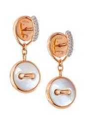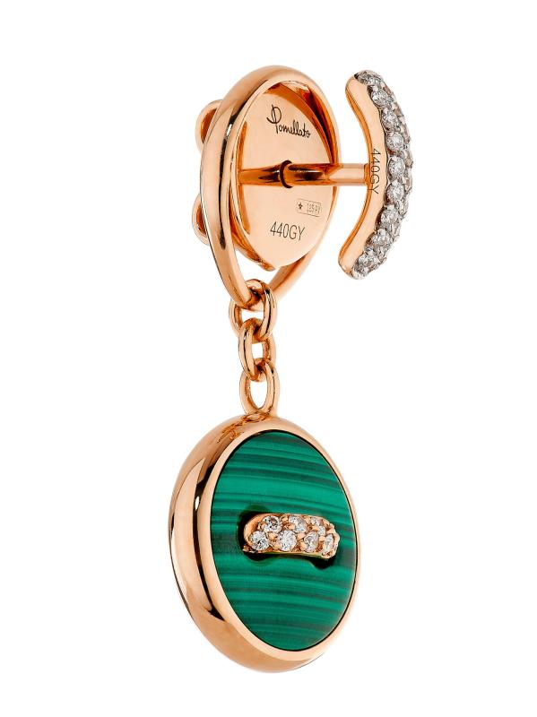 From the Pom Pom Dot Collection. Showcasing the label's iconic button motif, these striking ear jackets from Pomellato are handcrafted of 18K rose gold set with shimmering pavé diamonds. The drops reverse from malachite to mother-of-pearl for two different styling options.